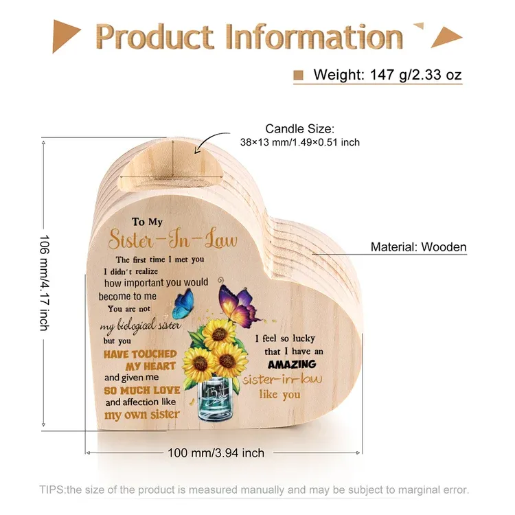 To My Sister-In-Law Heart Candle Holder "I Feel So Lucky That I Have An Amazing Sister-In-Law Like You" Wooden Candlestick