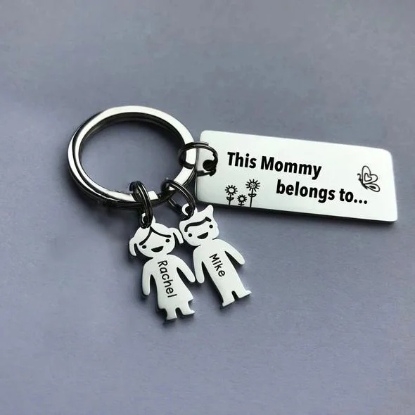 2 Names - Personalized Keychain with Kid Charm "This mommy belongs to" Mother's Day Gifts For Her