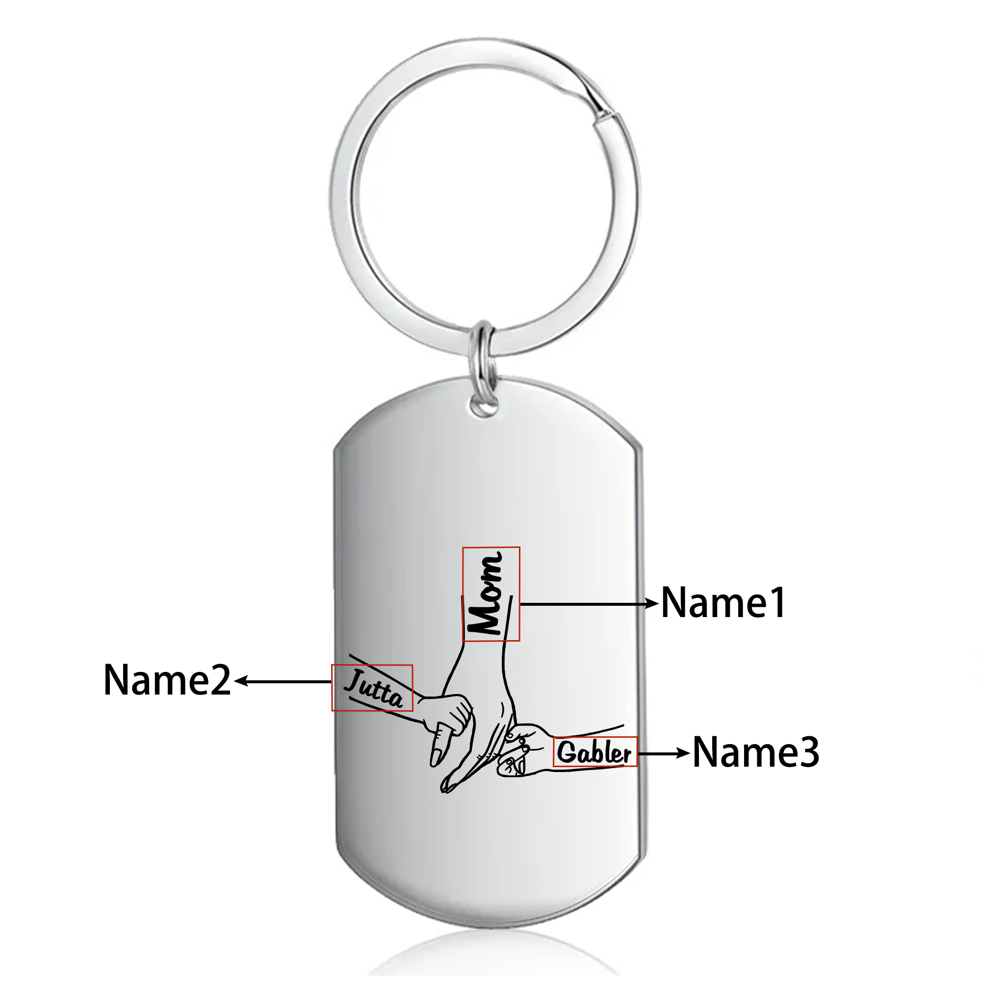 3 Names - Personalized Name Keychain Holding Hands Keychain Mother's Day Gifts For Grandma/Mother