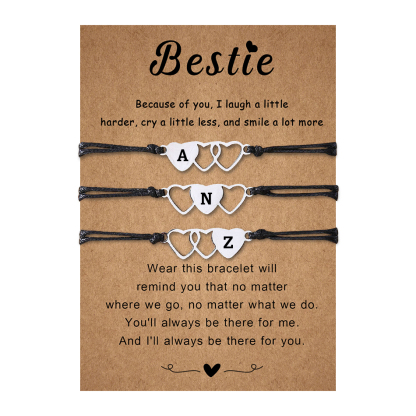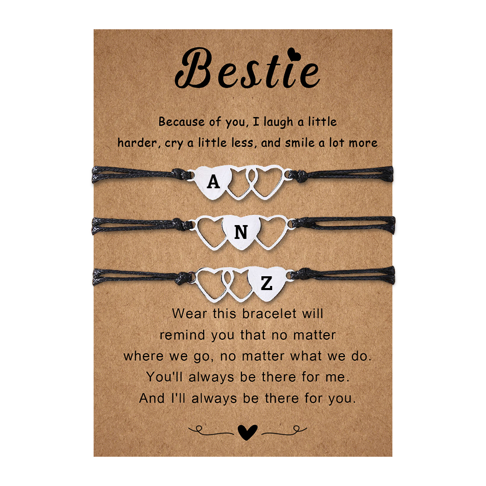 3 Pcs Bestie Bracelet Set Heart-Shaped Bracelets Engraved 3 Letters Adjustable Bracelet Gift for Bestie