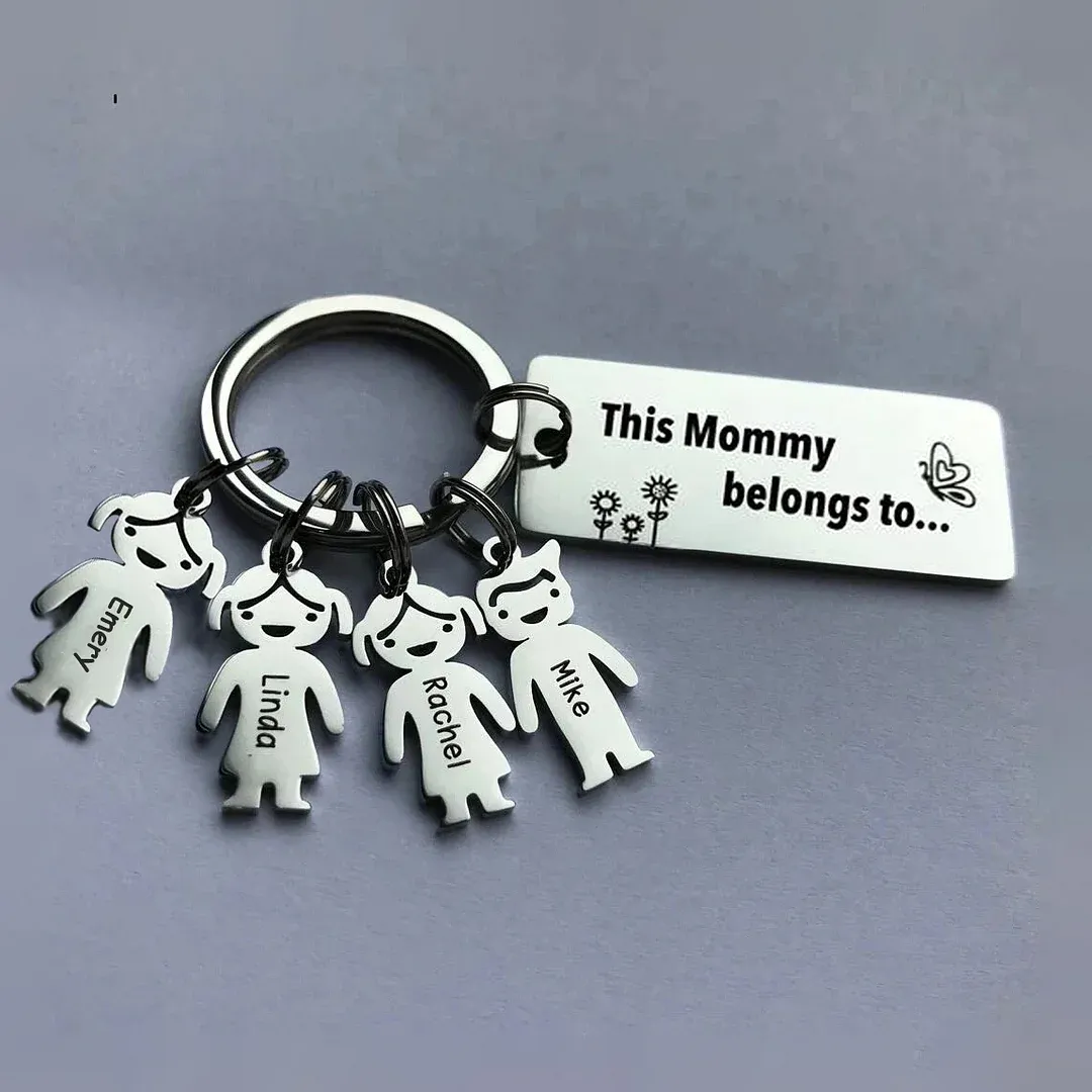 4 Names - Personalized Keychain with Kid Charm "This mommy belongs to" Mother's Day Gifts For Her