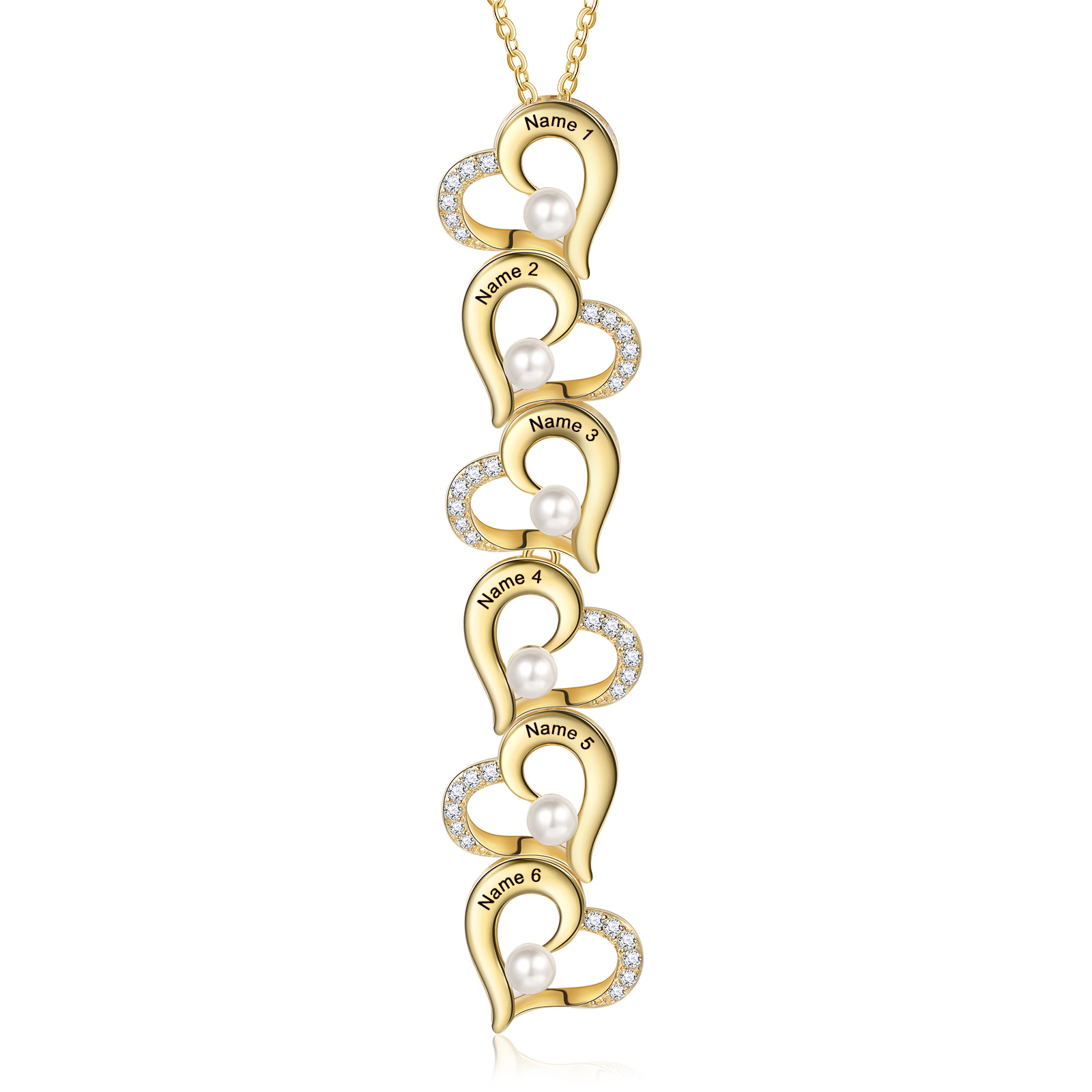 6 Names - Personalized Heart Shape Pendant Necklace Women's Customized Name Necklace Pearl Necklace Birthday Gift for Mother
