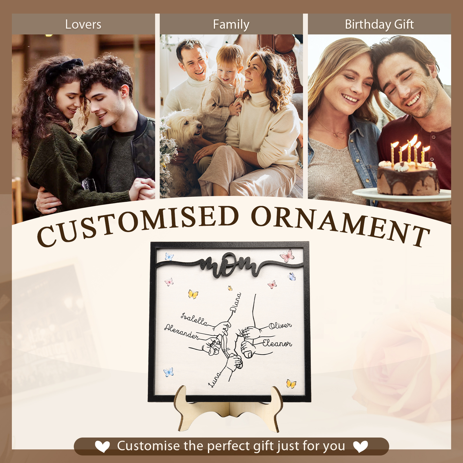 💕 Surprise your mom with a thoughtful and personalized gift that captures the essence of family love. This wooden ornament piece is ideal for birthdays, Mother's Day, anniversaries, or any special occasion.