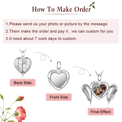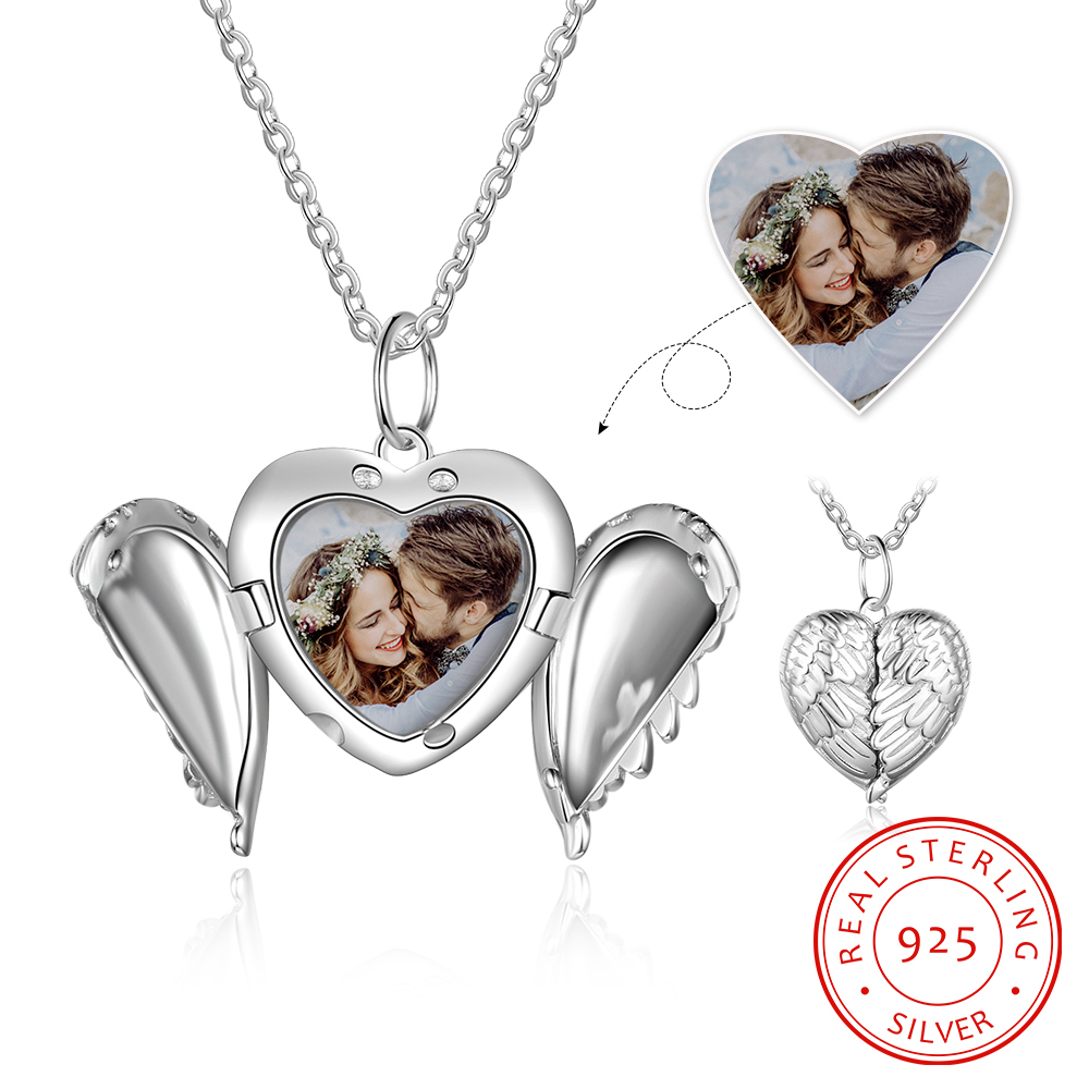 Angel Wing Photo Locket Necklace Personalized Heart Photo Necklace with Engraving