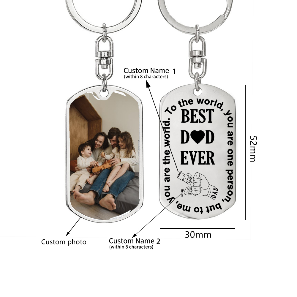 Best Dad Ever Keychain Custom Photo and 2 Names Family Keychain