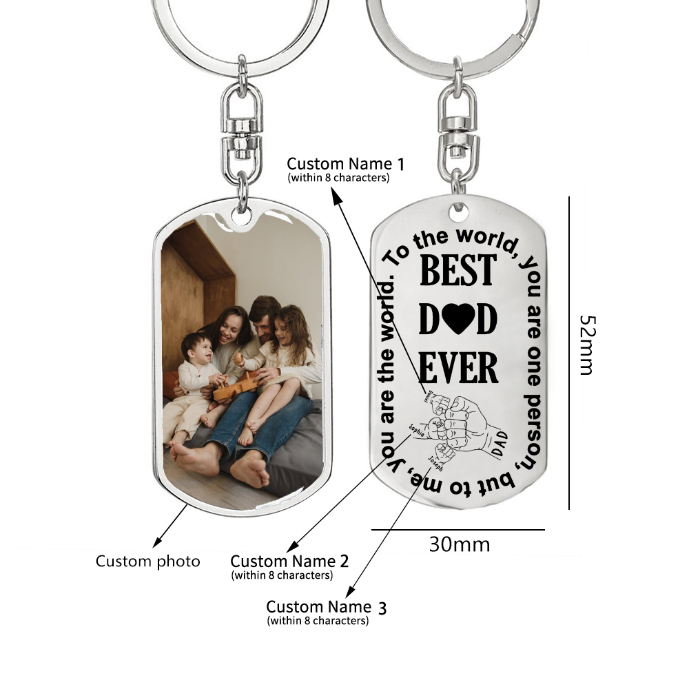 Best Dad Ever Keychain Custom Photo and 3 Names Family Keychain