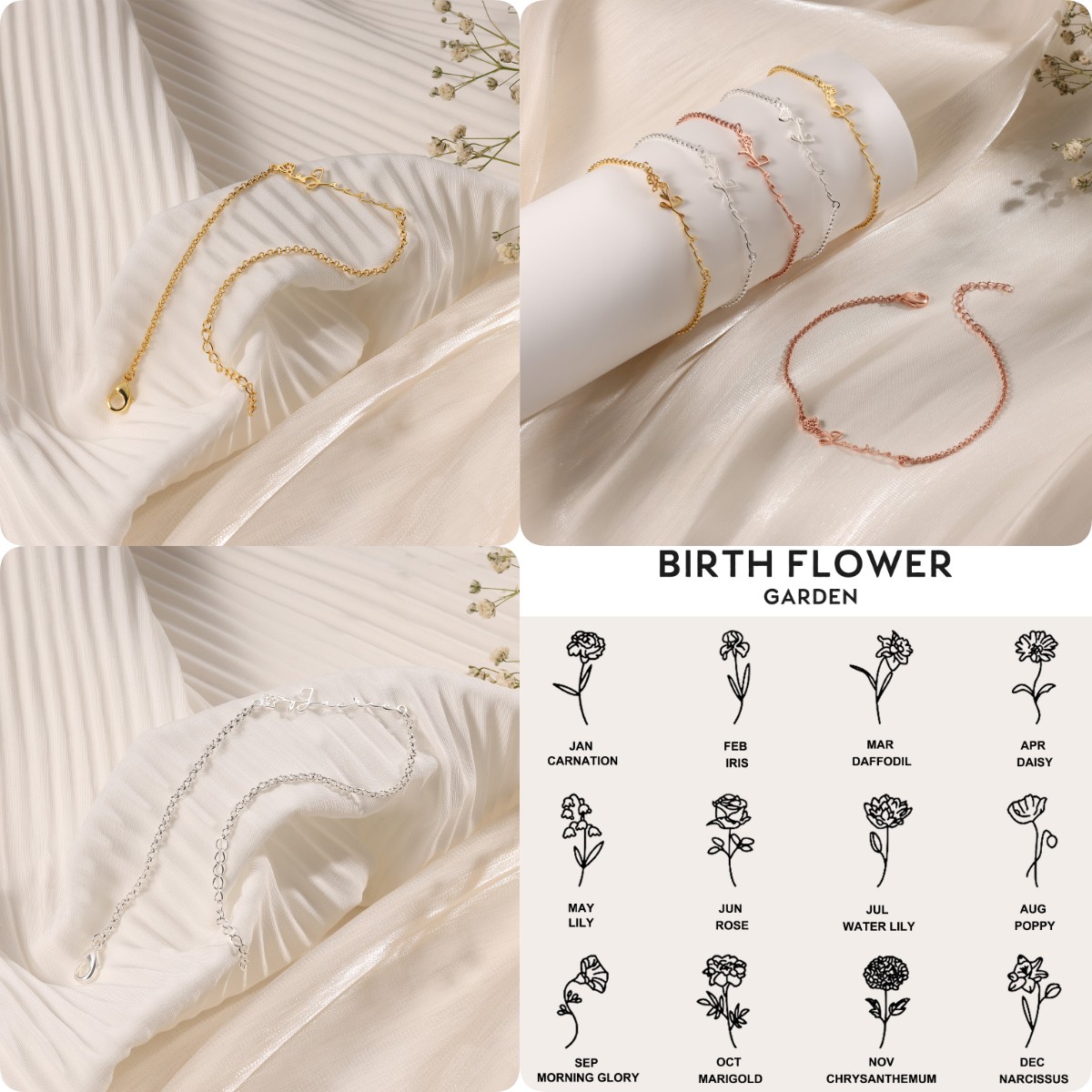 Birth Flower Bracelet Personalized 1-12 Months Birth Flower Name Bracelet Gifts for Her