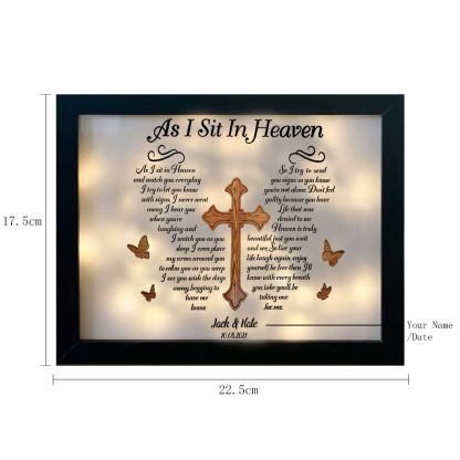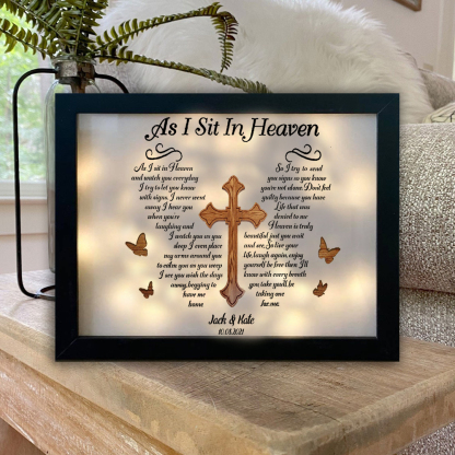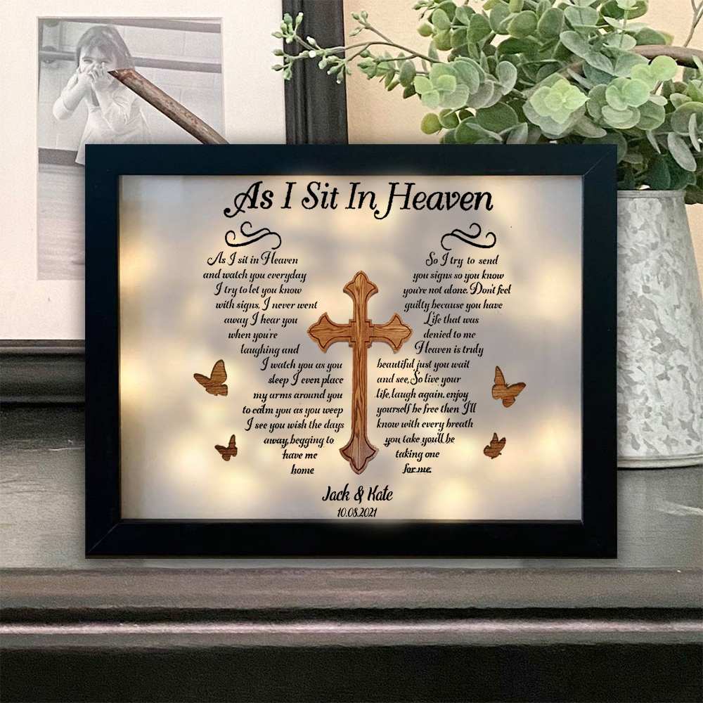 Cross Frame Personalized As I Sit in Heaven Poem Lighted Shadow Box Memorial Gifts