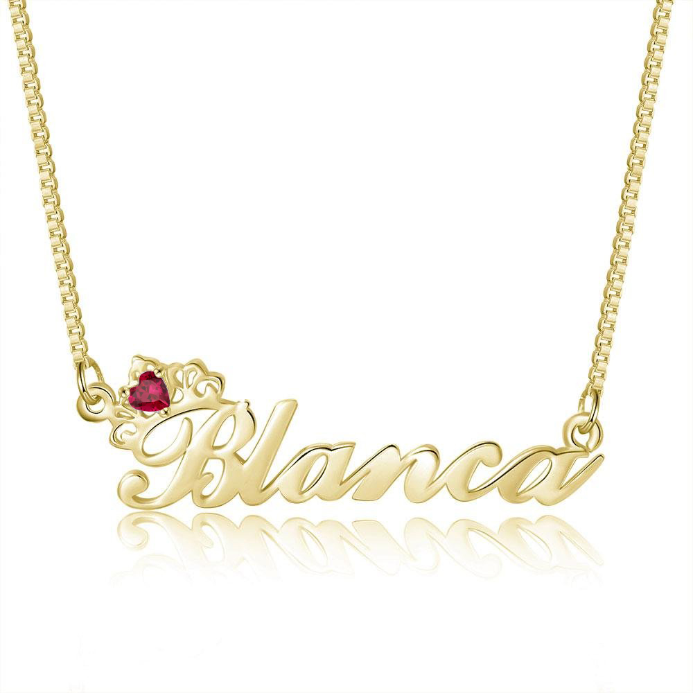 Crown Name Necklace with Ruby Birthstone Birthday Gift for Girls