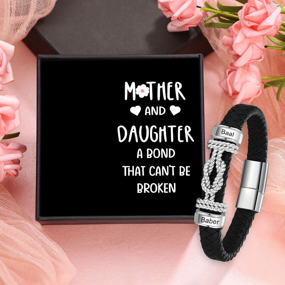 Custom Knot Leather Bracelet Personalized 2 Names Beaded Wrap Bracelet Gift for Him/Her