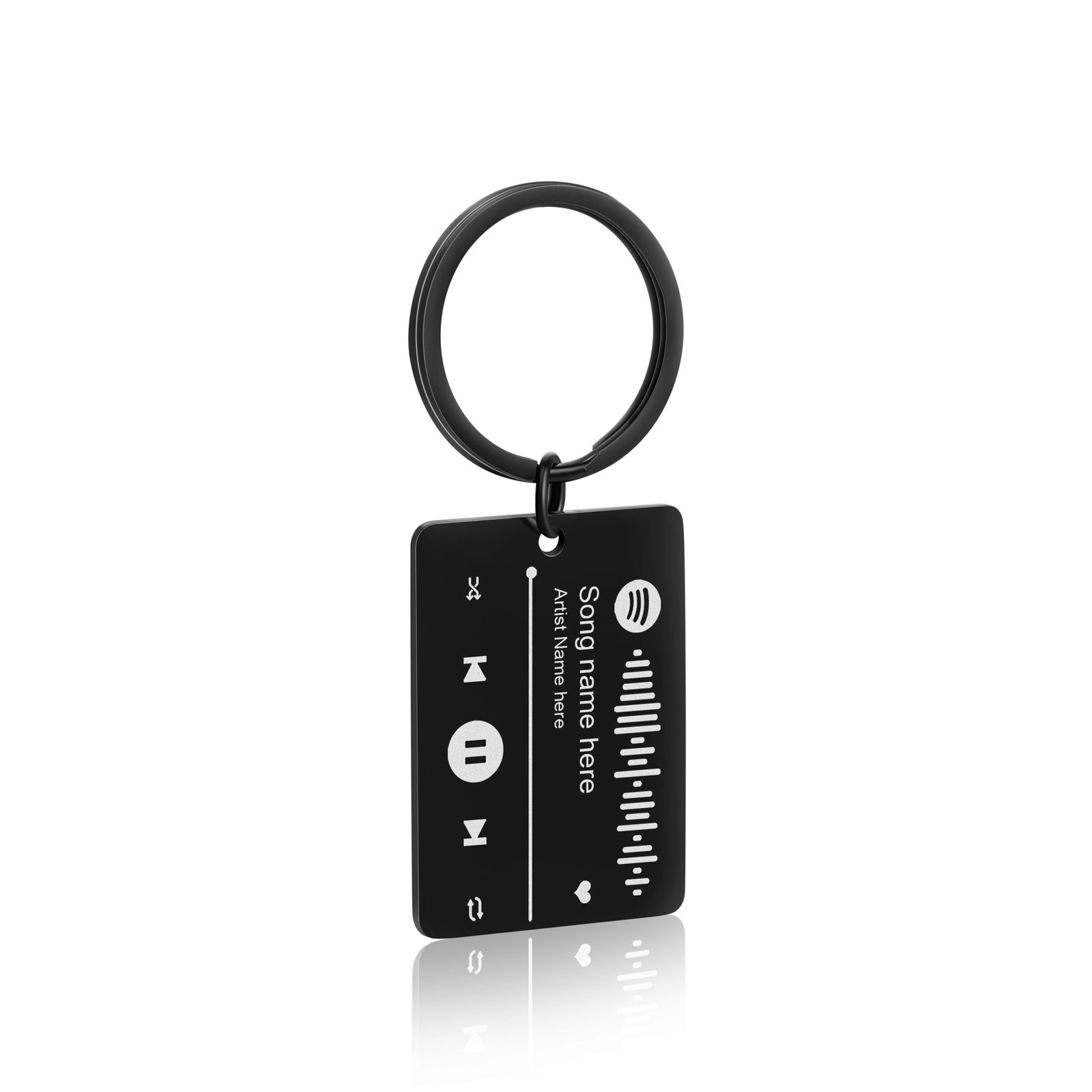 The keychain is made of solid stainless steel, Unisex, with the Spotify code laser engraved on the front side.