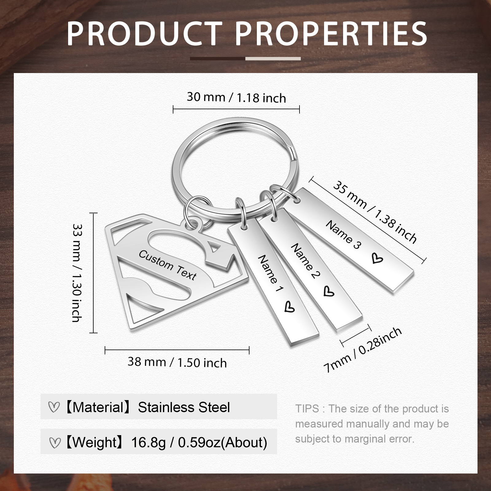 Custom Supermon Sign Keychain Engrave 3 Names For Mom
