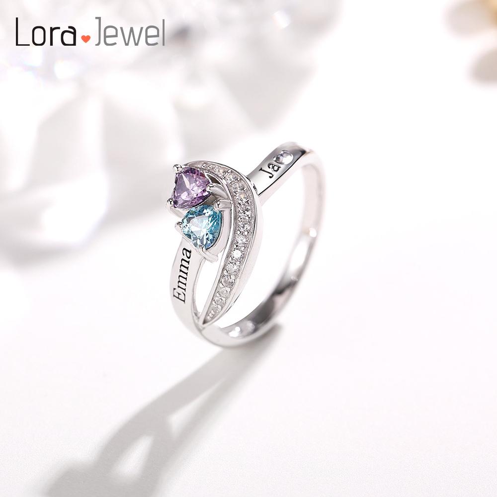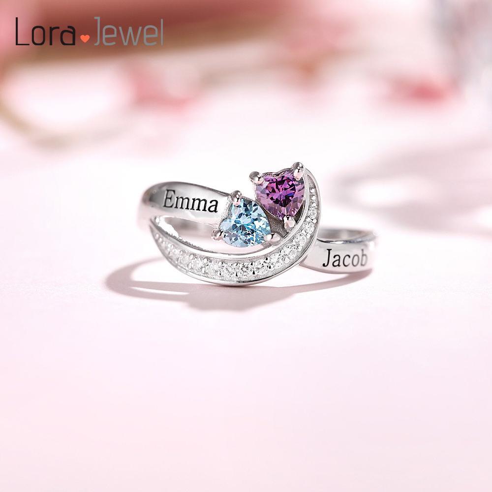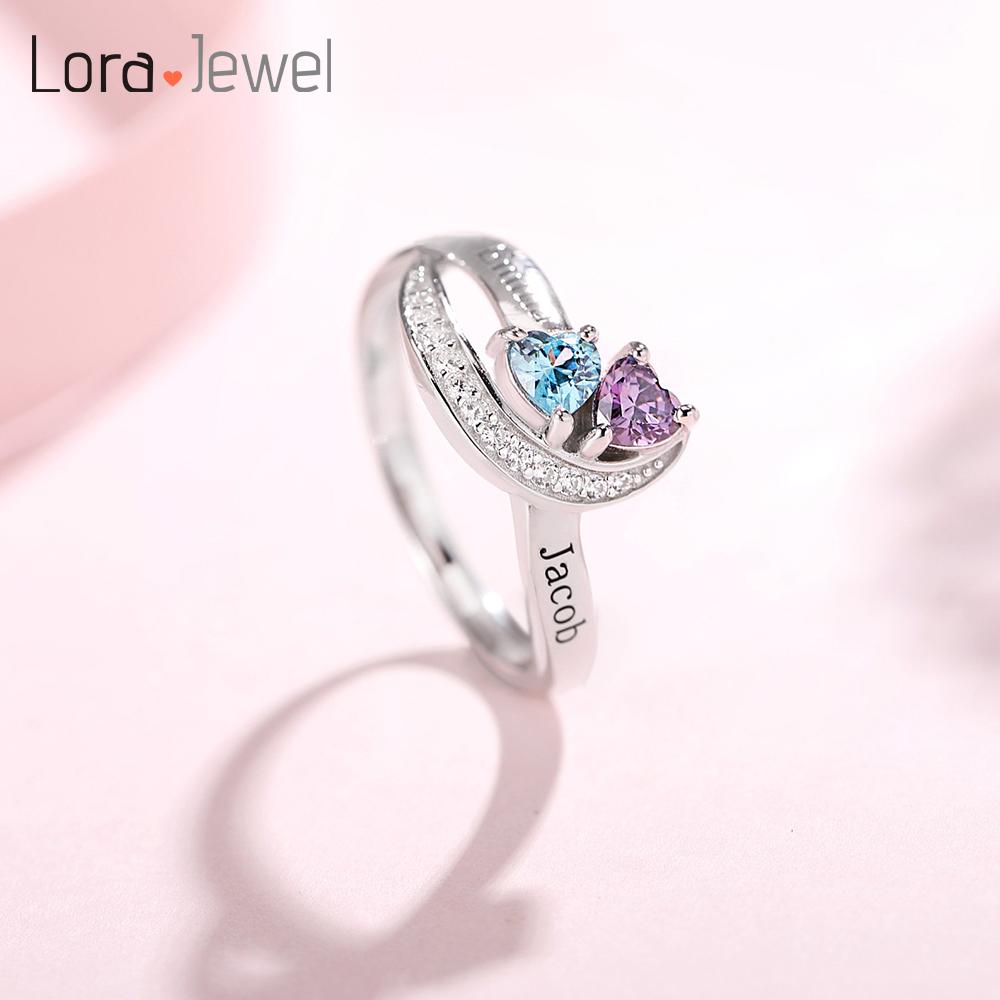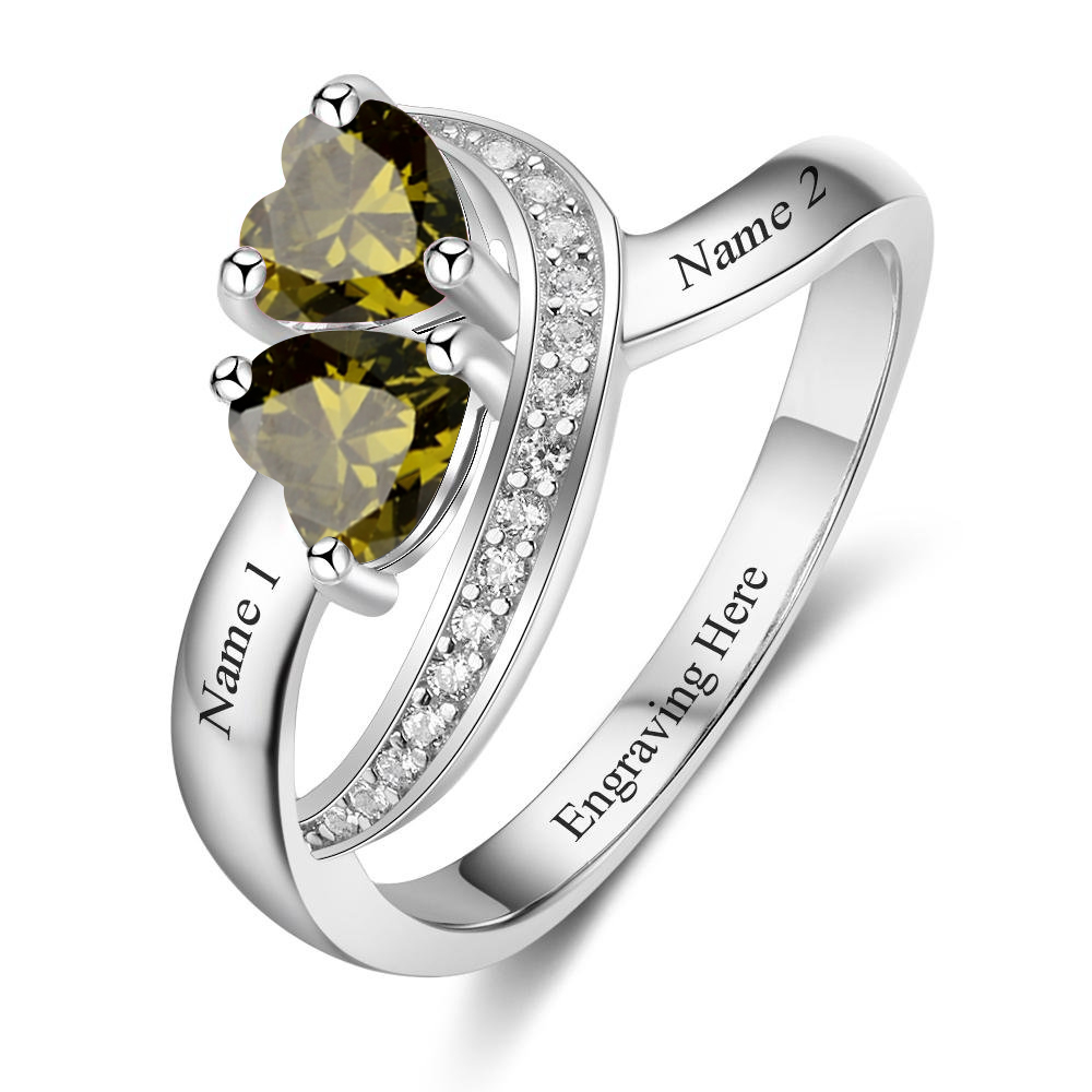 Personalized: Can choose 2 birthstones, engraving 2 names on the Ring
