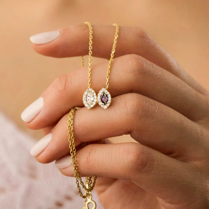 Family Birthstone Necklace Custom 2 Birthstones Charm Mother Necklace