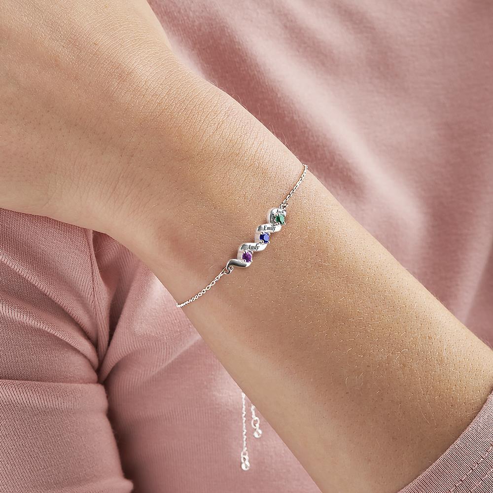 Family Custom Bracelet Personalized 3 Names & Birthstones Bracelet
