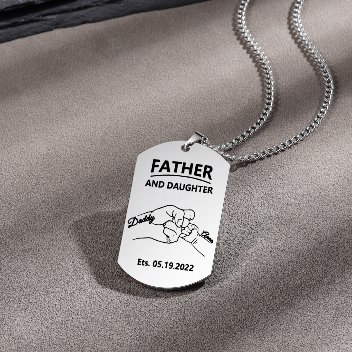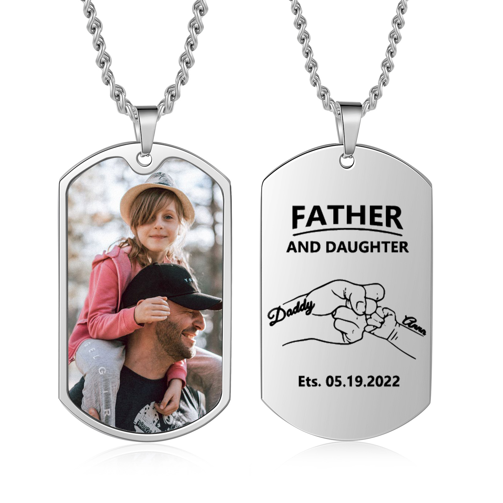 Father and Daughter Necklace Personalized Men's Photo Dog Tag Necklace Gift for Him