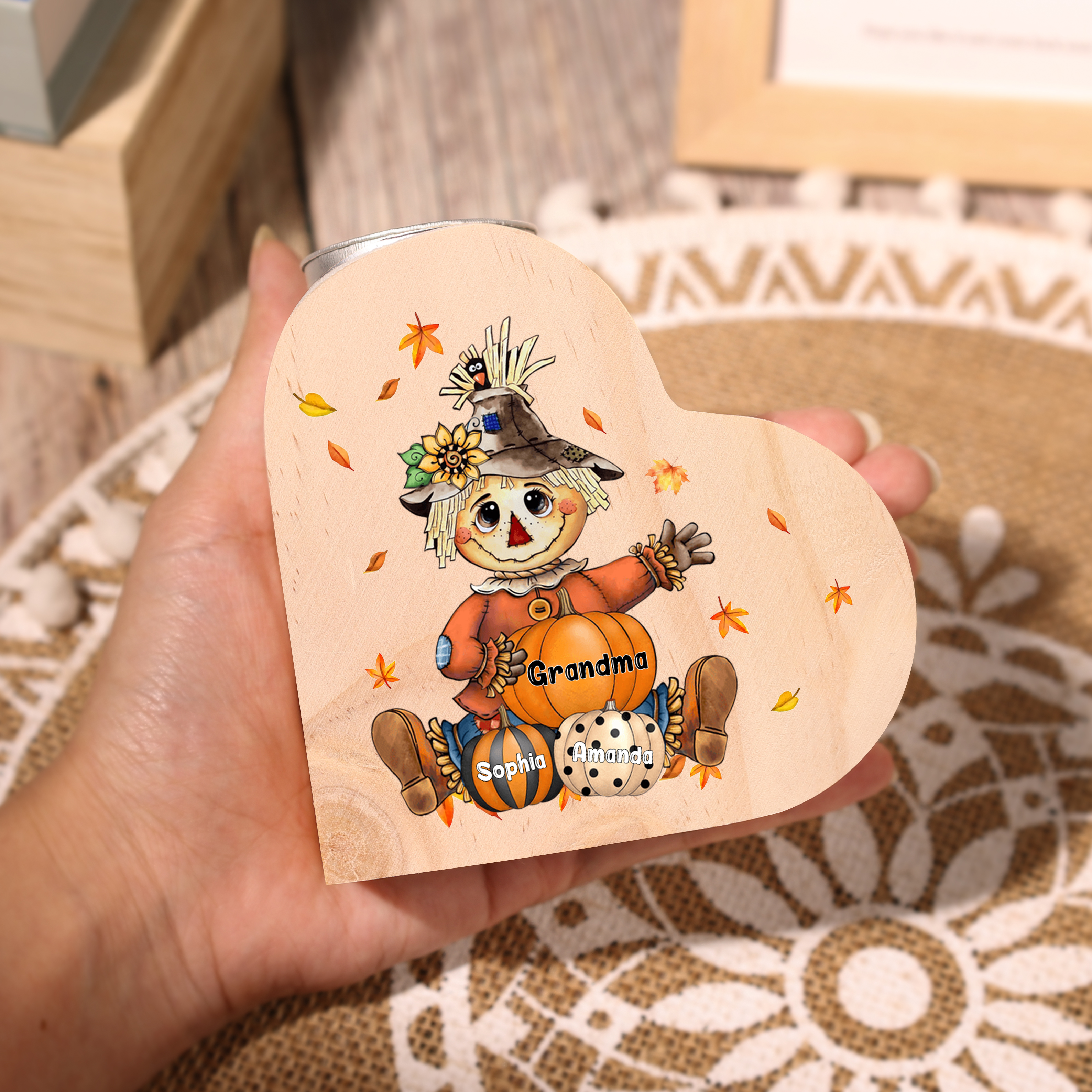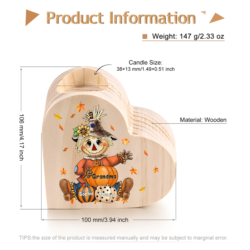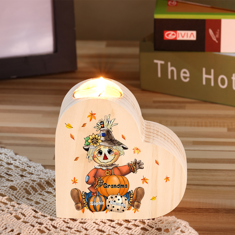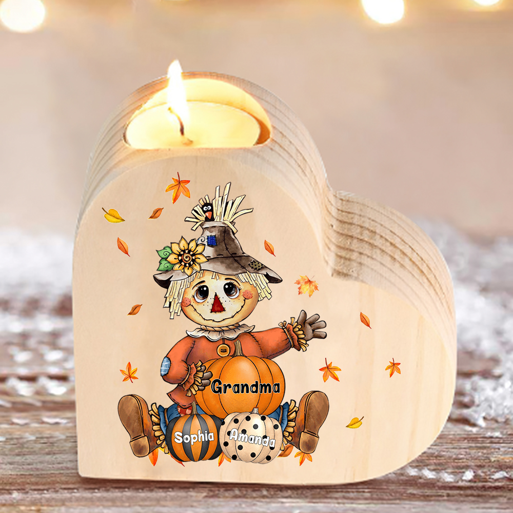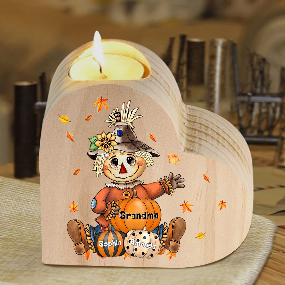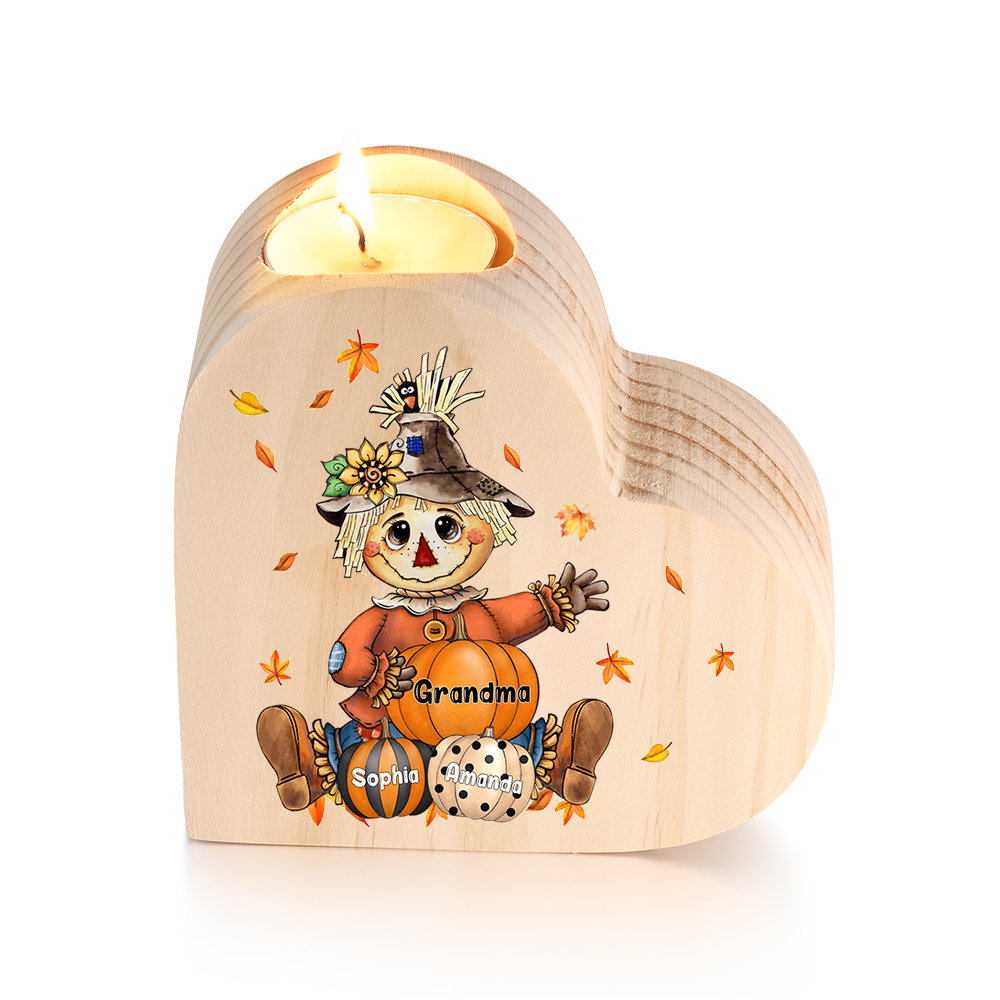 Heart-Shaped Halloween Candle Holder Engraved 3 Names Pumpkin Candlesticks Halloween Gift for Mom Grandma