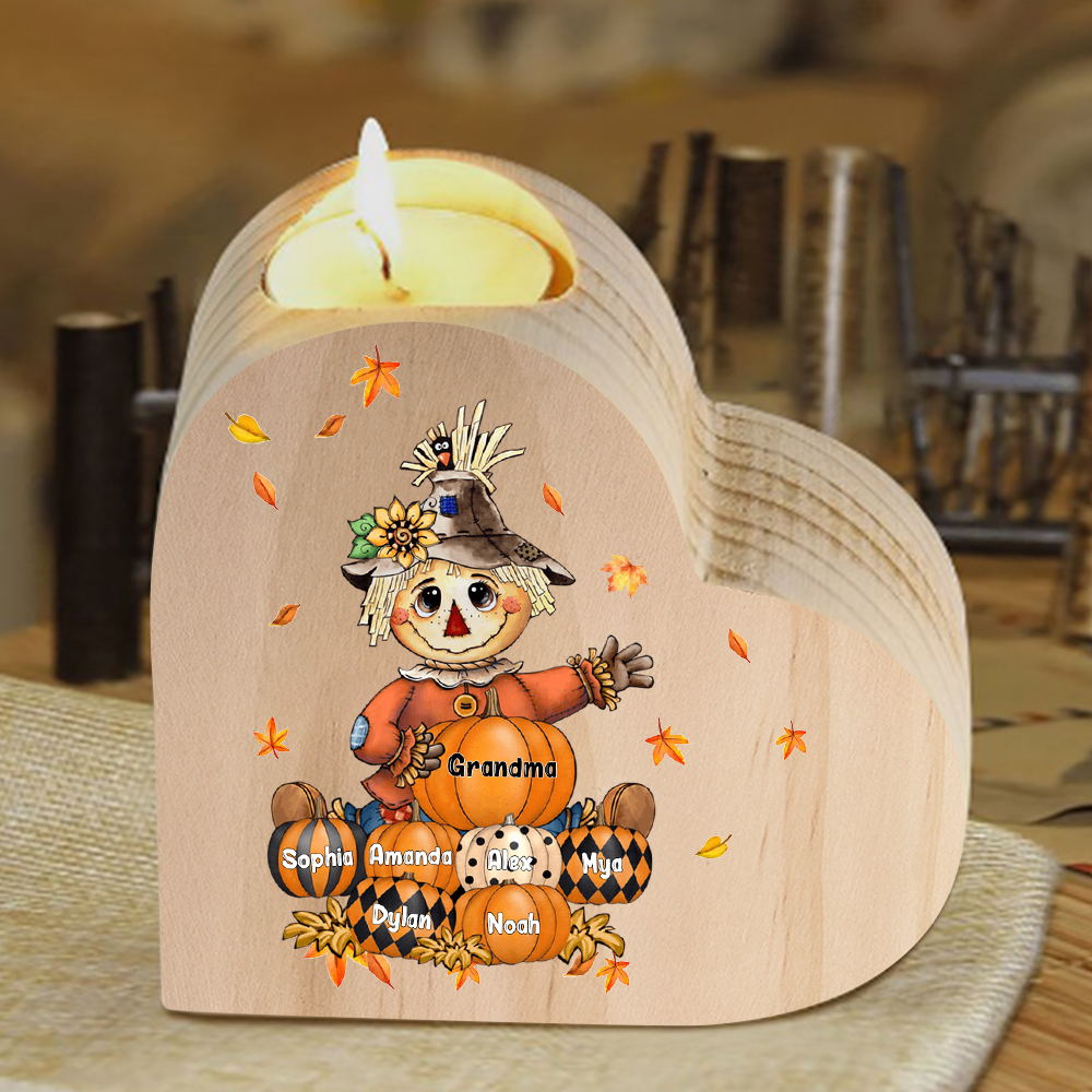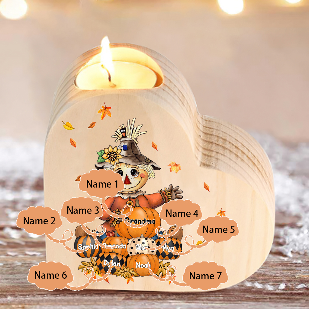 Heart-Shaped Halloween Candle Holder Engraved 7 Names Pumpkin Candlesticks Halloween Gift for Mom Grandma