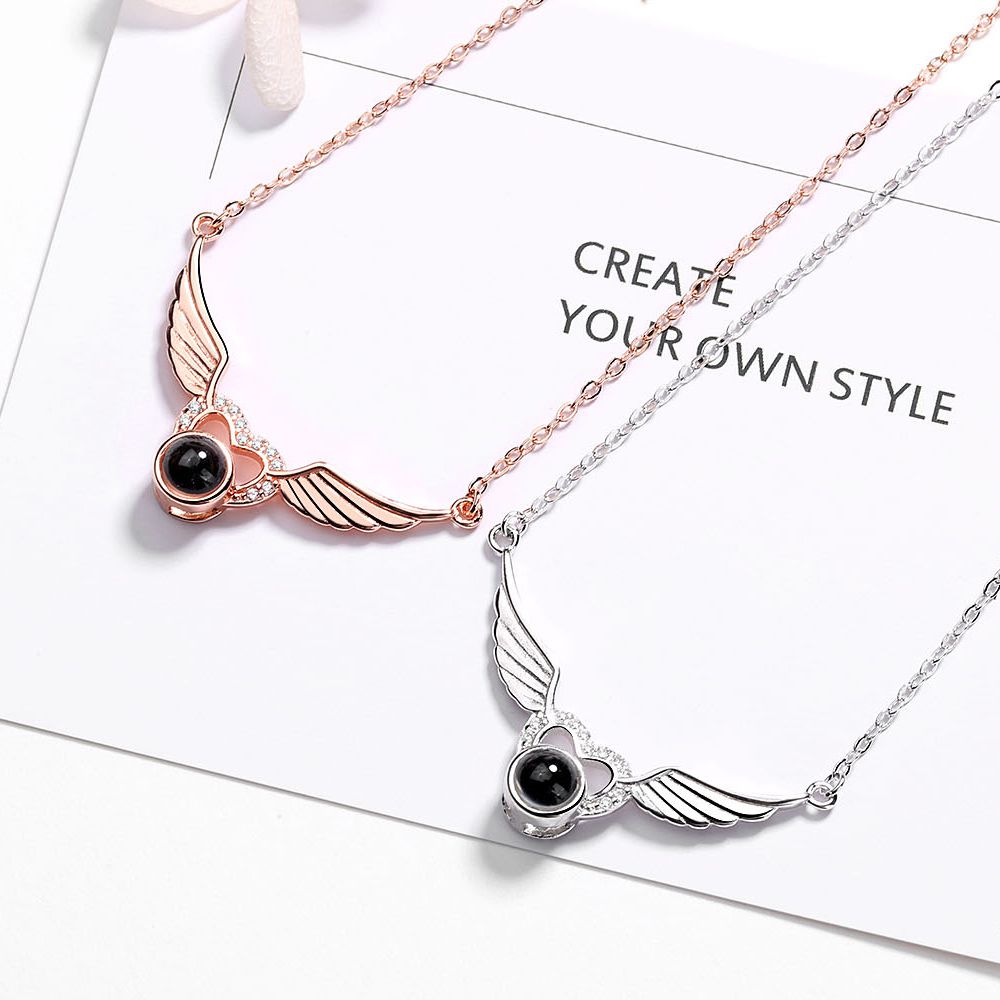 Heart Wings Necklace Custom Photo Projection Necklace for Her