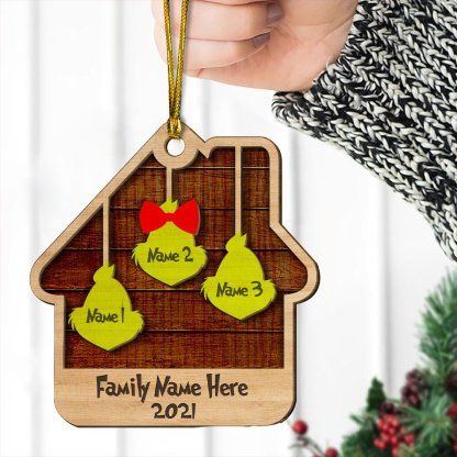 House Ornament for Family Custom 3 Names Wooden Ornament