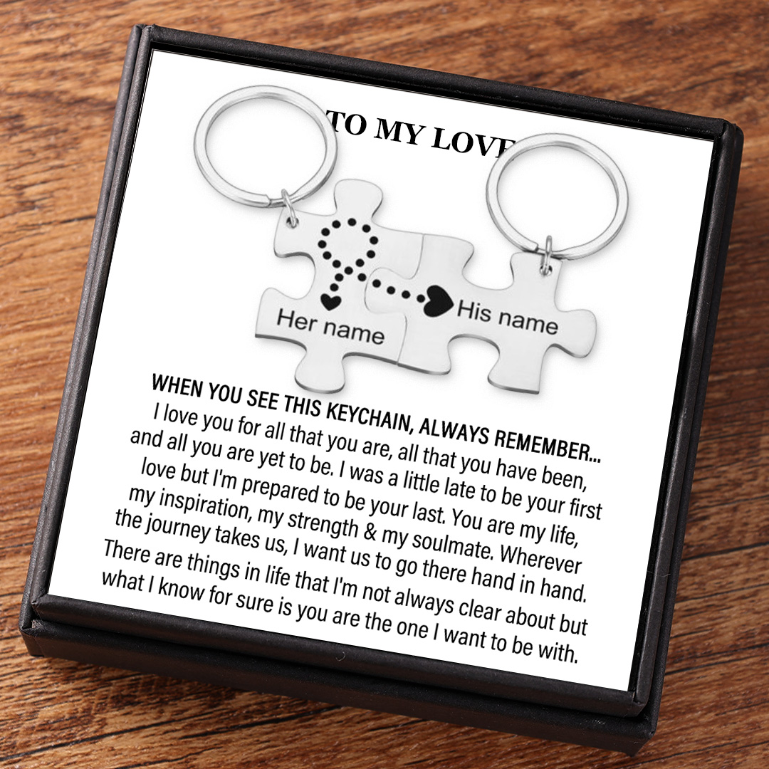 Long Distance Couple Puzzle Keychain Set Personalized 2 Names Gift