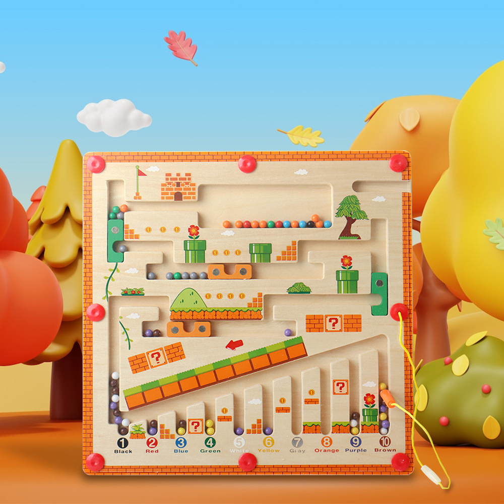 Magnet Maze Toy Number & Color Maze Game Educational Magnetic Labyrinth Toy Funny Wooden Gift for Kids