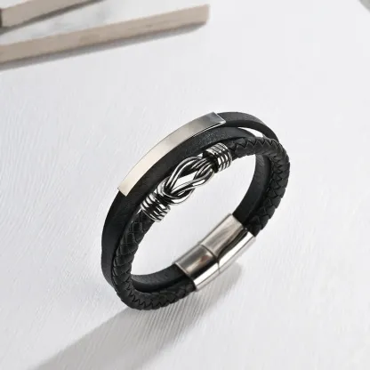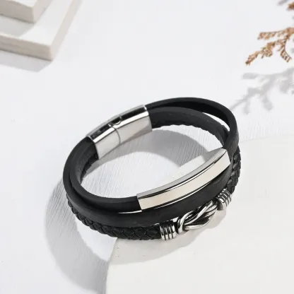 -Material: Stainless steel charm stackable layered leather braided black bracelet