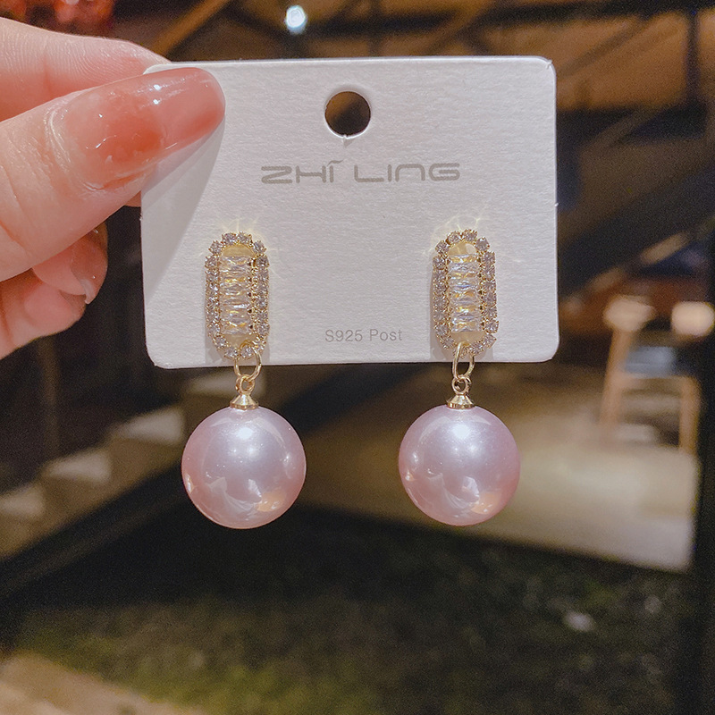 Pearl Dangle Earrings Pink and White Pearl