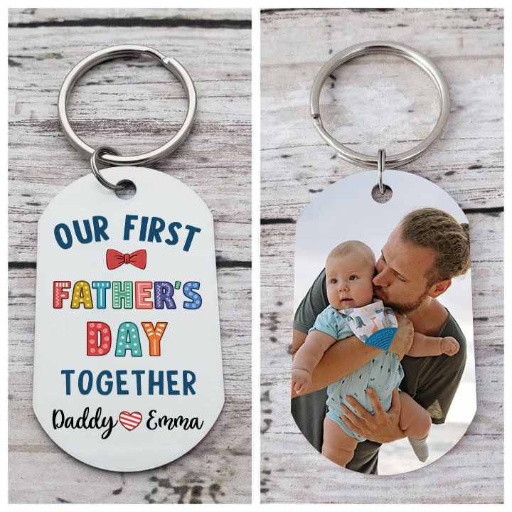 Personalized 1 Photo & 2 Names Keychain Metal Keychain Gifts for Husband - Our First Father's Day Together