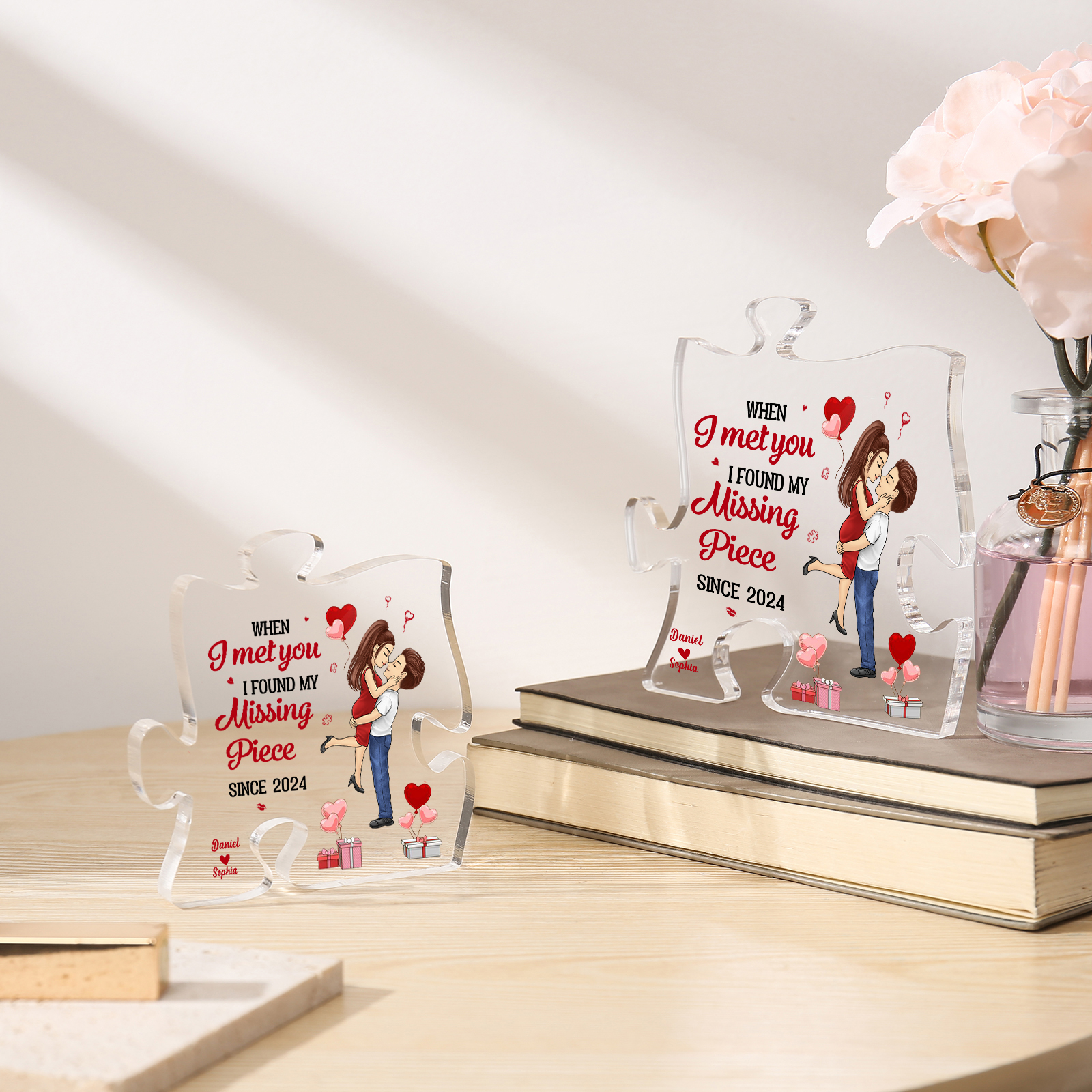 Personalized Acrylic Puzzle Plaque Custom 2 Names & 1 Year Ornament Couple Gift - When I Met You, I Found My Missing Piece