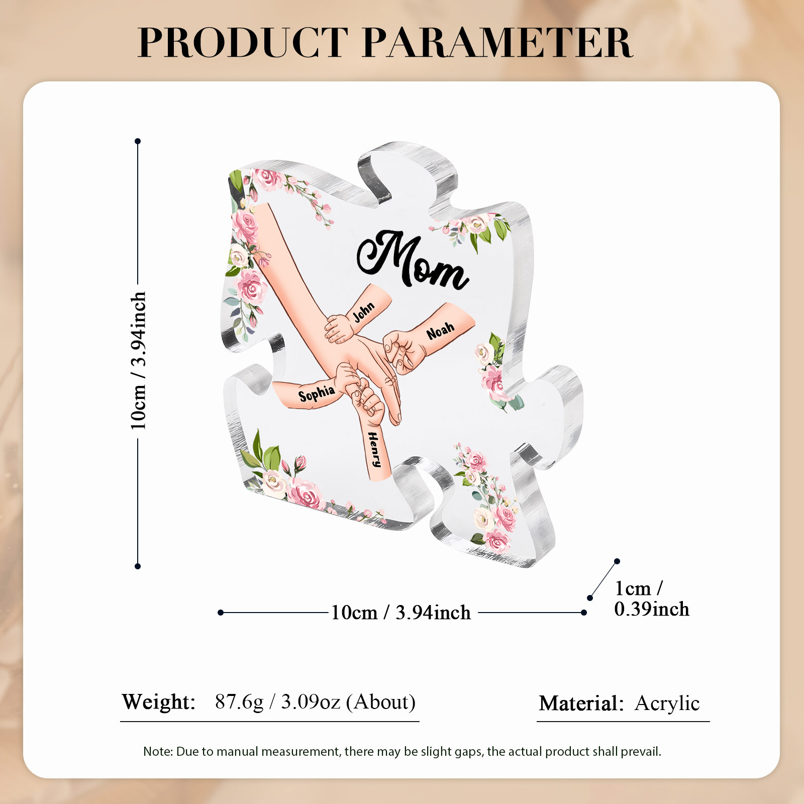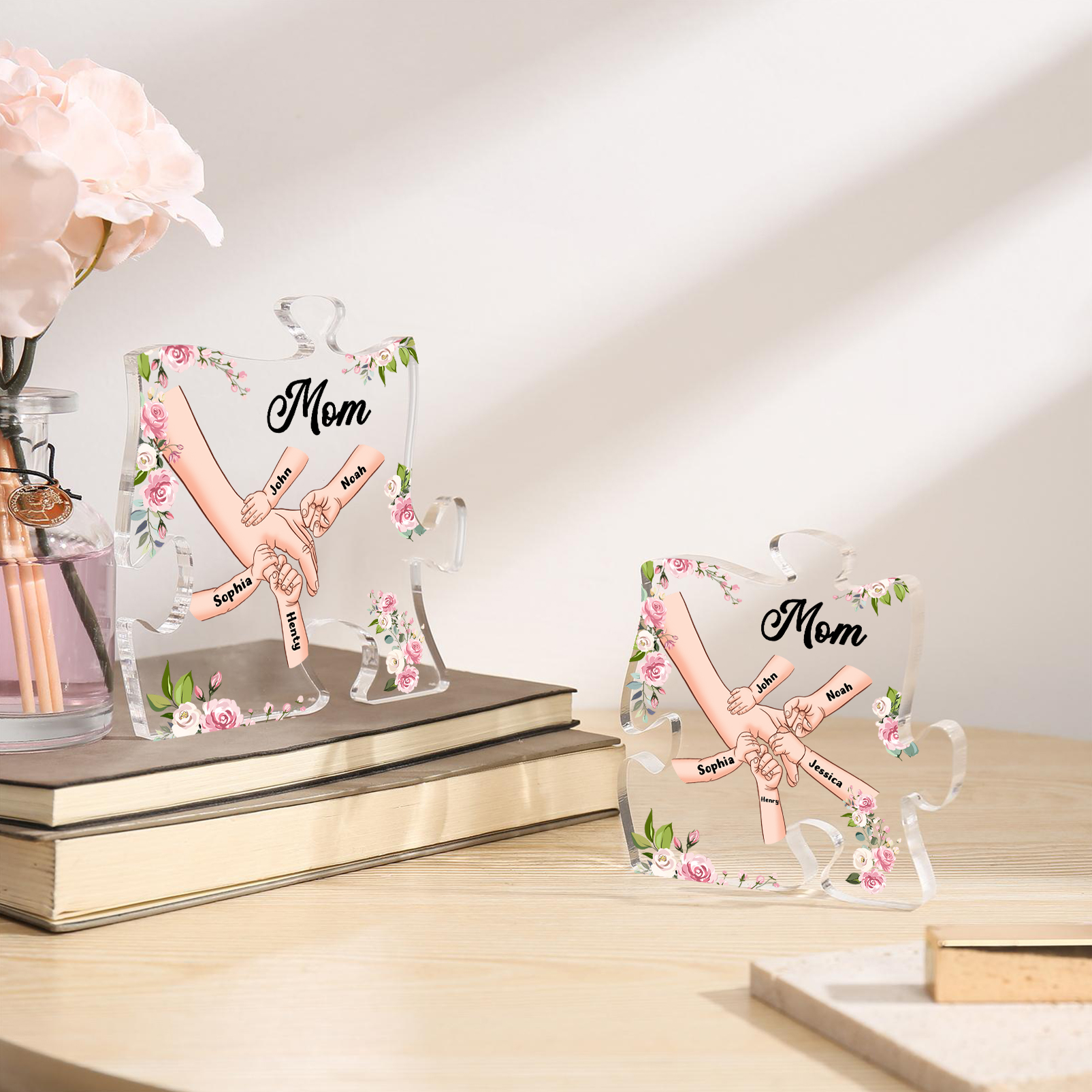 Personalized Acrylic Puzzle Plaque Custom 4 Names & 1 Text Holding Hands Ornament Family Gift for Mom/Grandma
