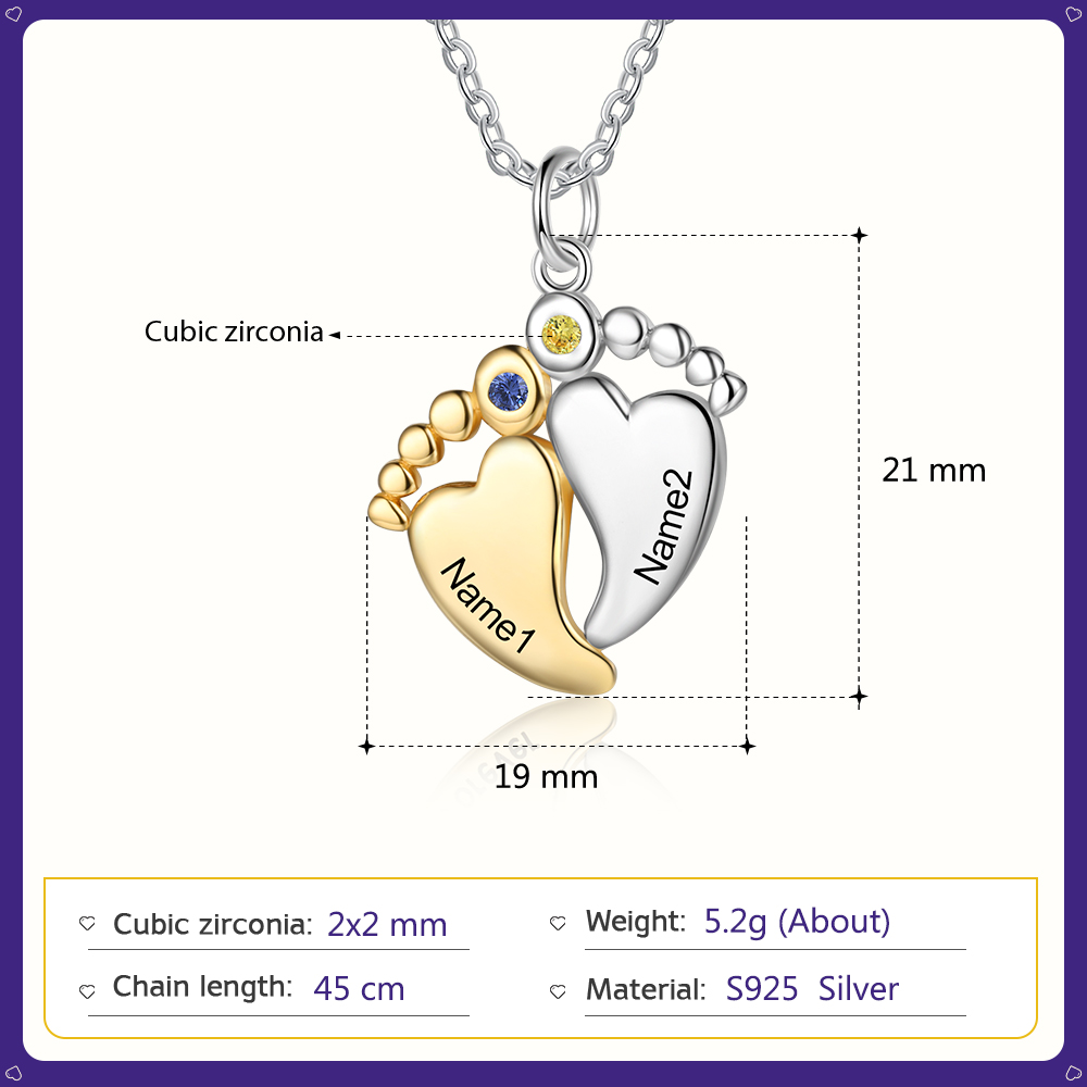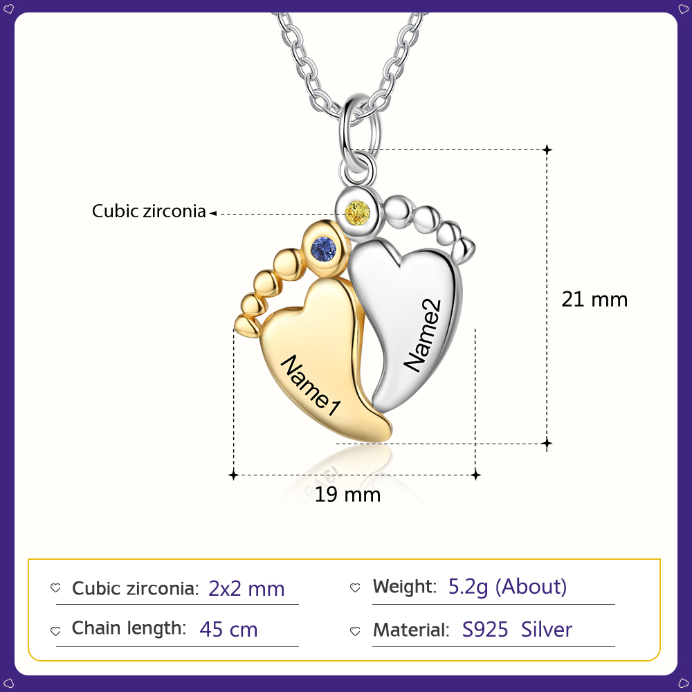 Personalized Baby Feet Necklace with 2 Birthstones Gifts for Mother