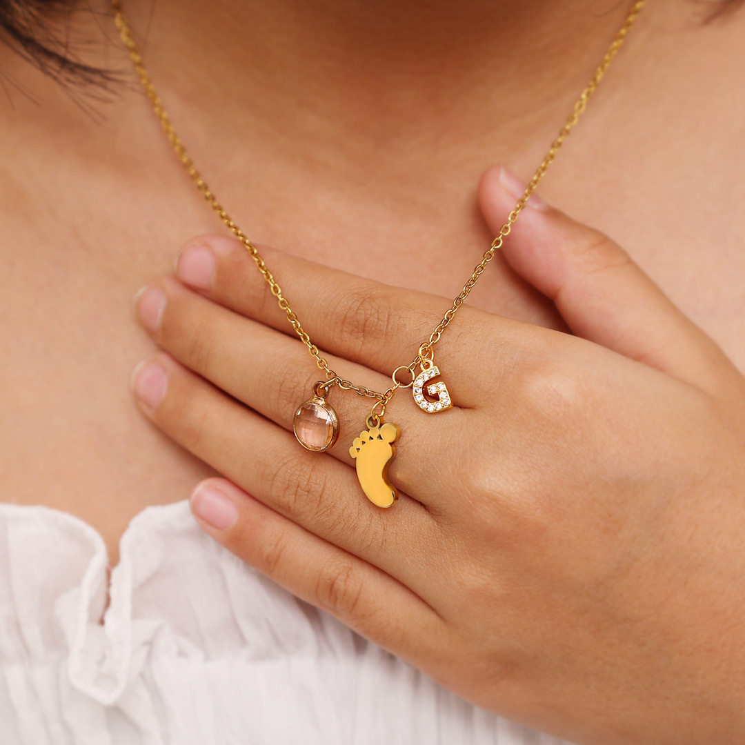 Personalized Foot Necklace Custom Birthstone and Initial Kid's Necklace