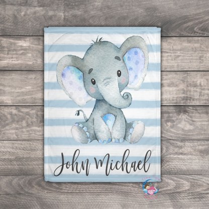 Personalized Blue Elephant Blanket Custom Name Gifts For Baby Boy