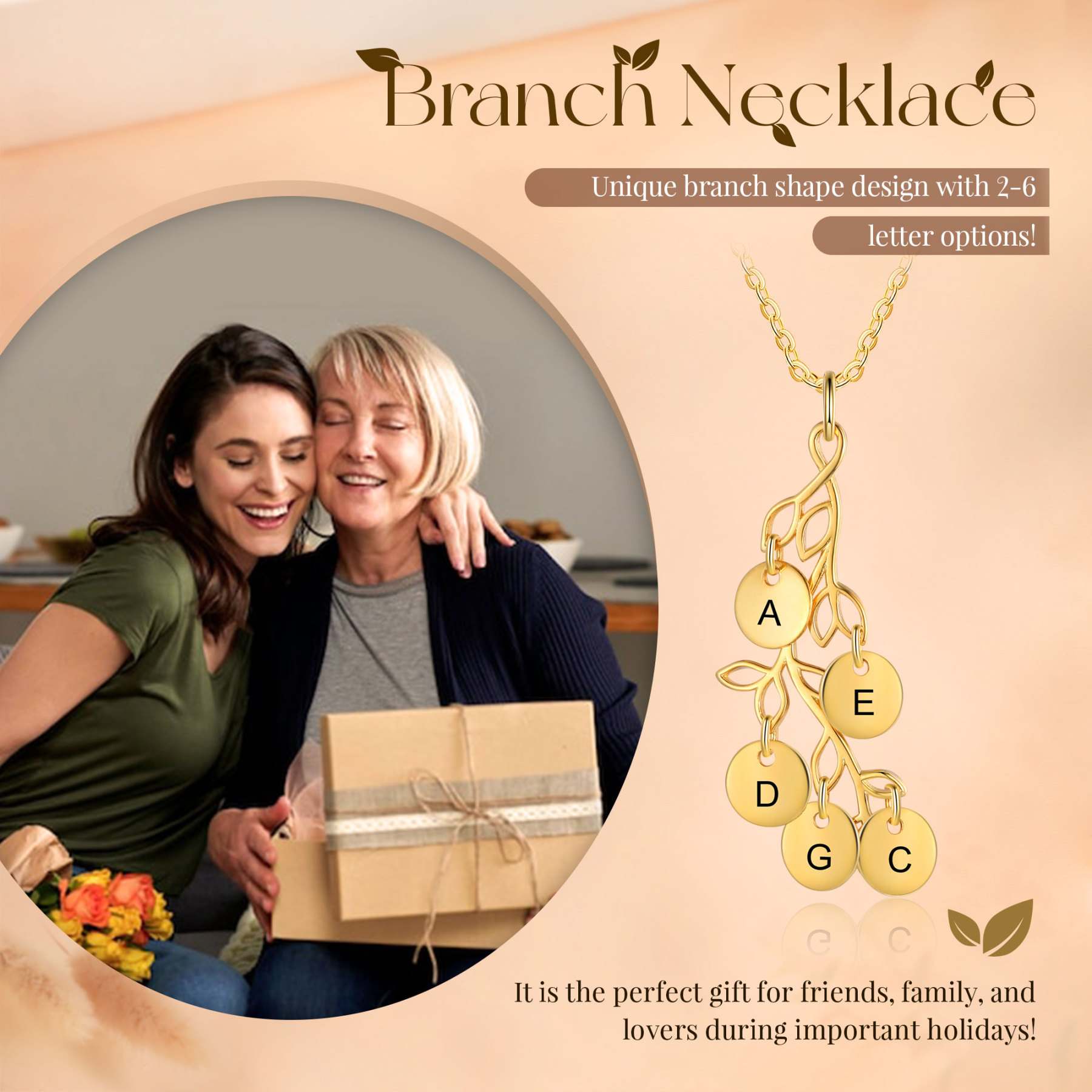 Personalized Branches Pendant Necklace Custom 5 Letters Circle Charm Necklace Gold Birthday Gift for Her