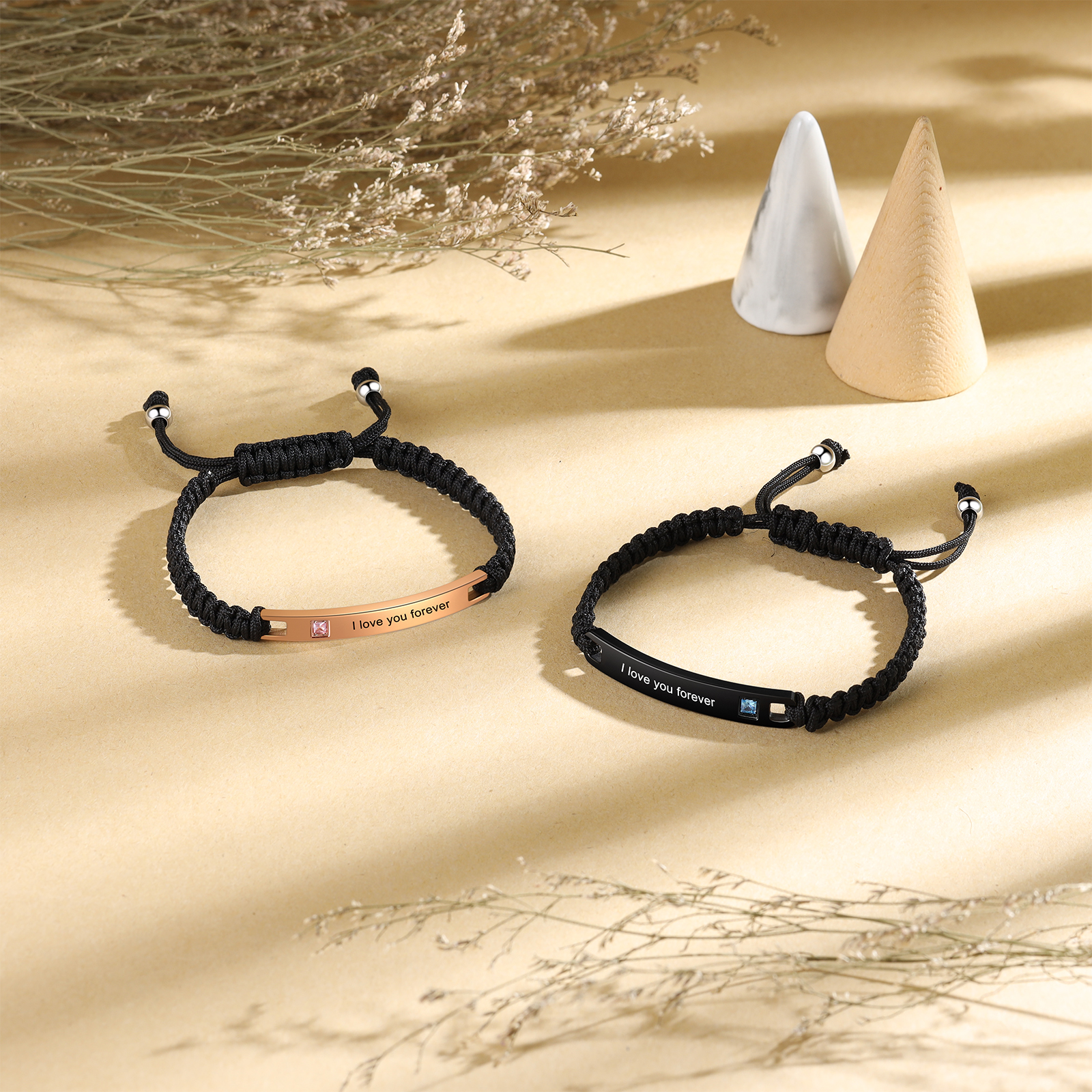 -Can custom 2 text on the bracelet, with your names/ dates/ initials/ phrases.