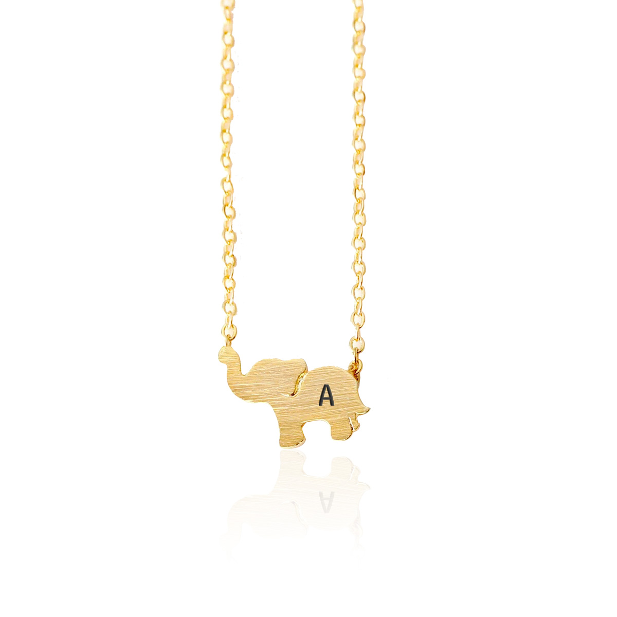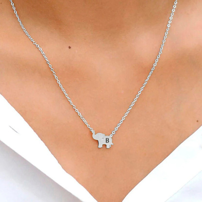 Personalized Elephant Pendant Necklace Customize 1 Letter Necklace Back to School Gift for Girls