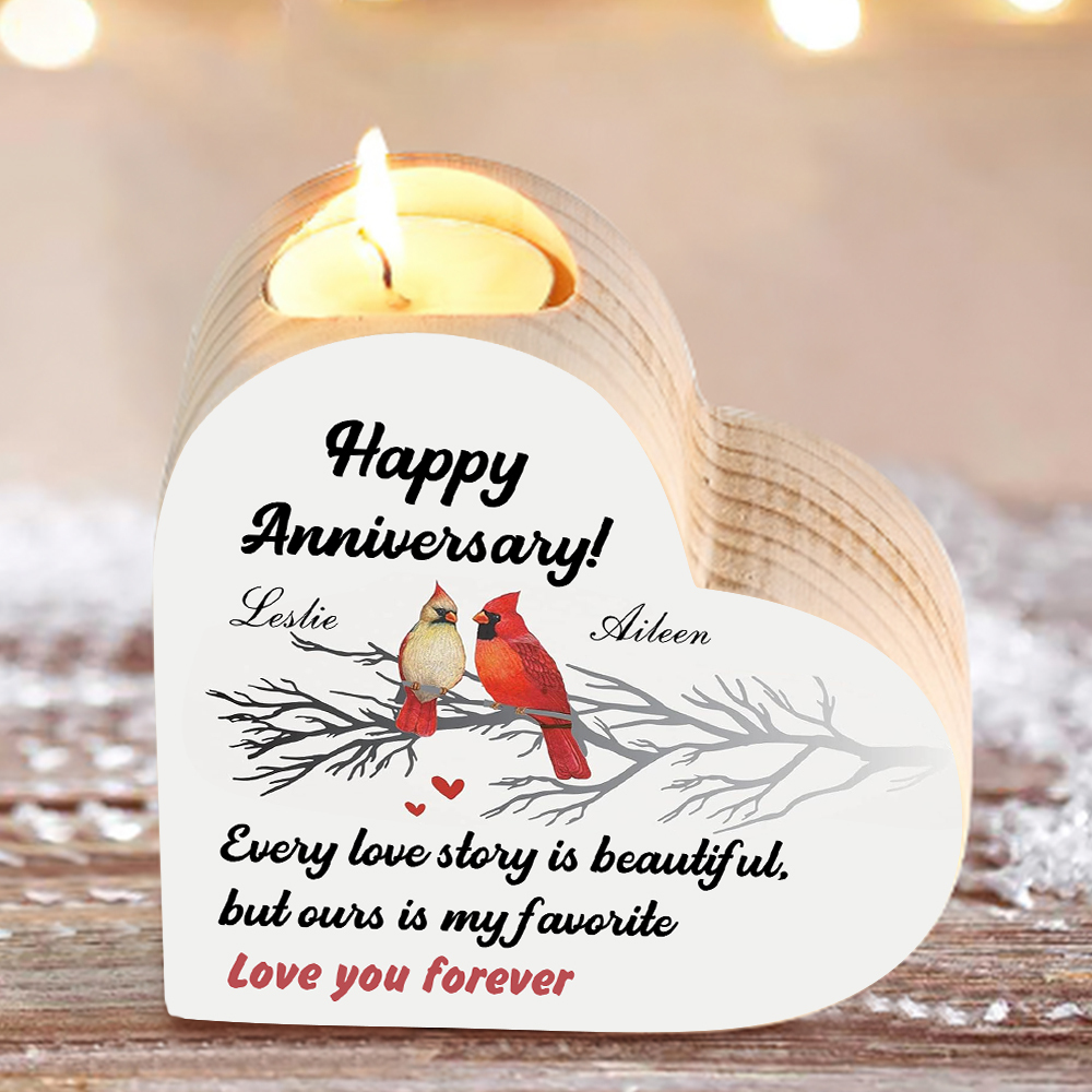 Personalized Heart Candle Holder Custom 2 Names Wooden Candlesticks Red Robin Candle Holder Anniversary Gift for Couples
