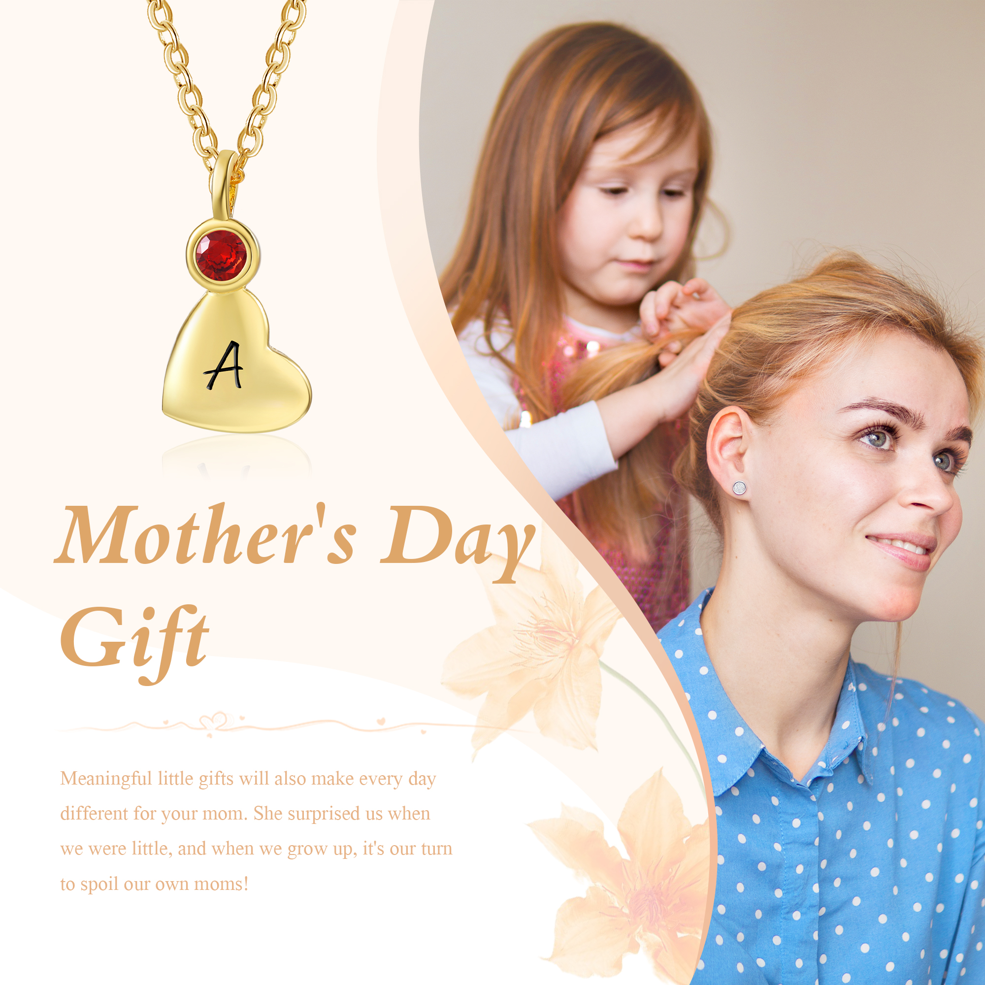 Personalized Heart Pendant Necklace Custom 1 Letter & 1 Birthstone Necklace Gifts for Her