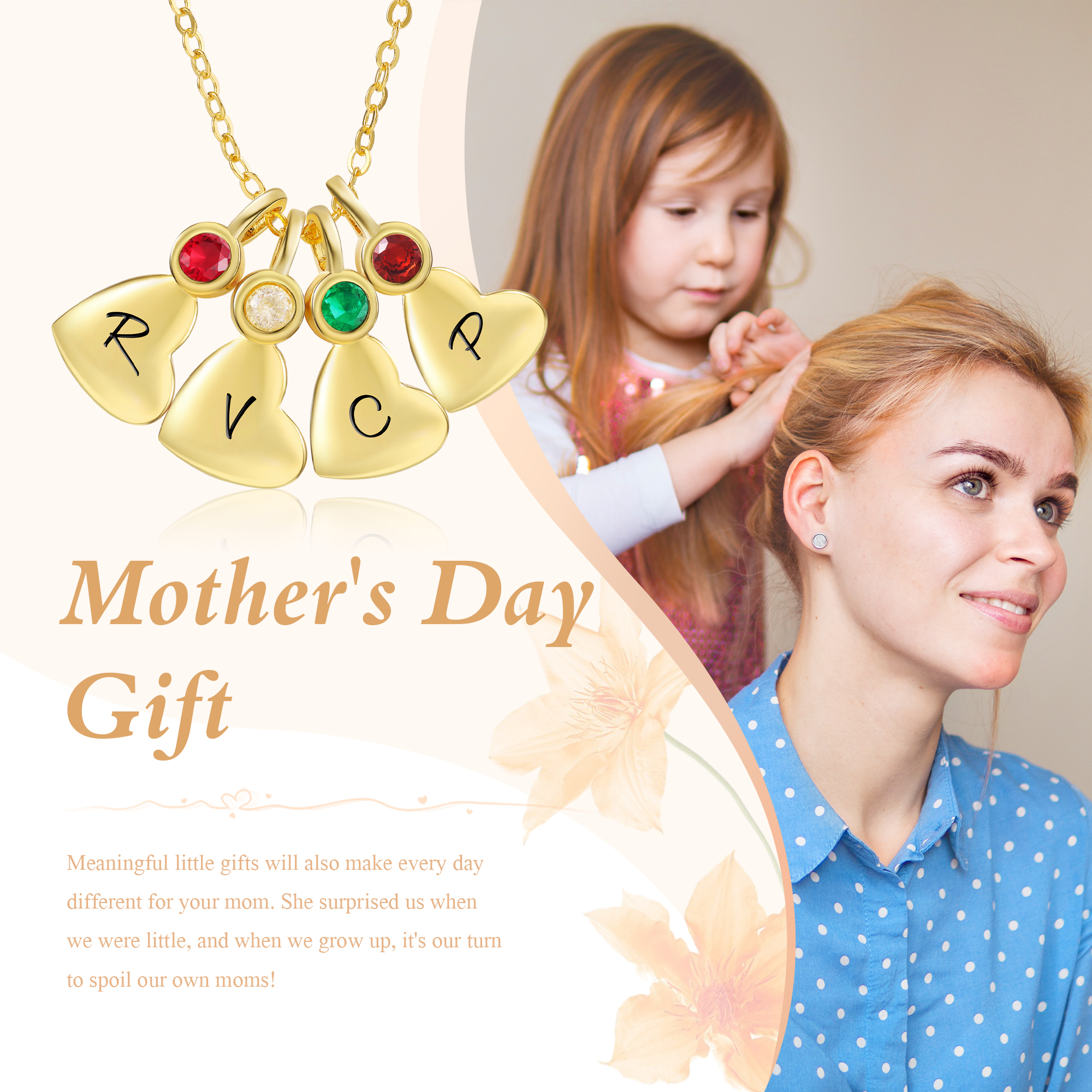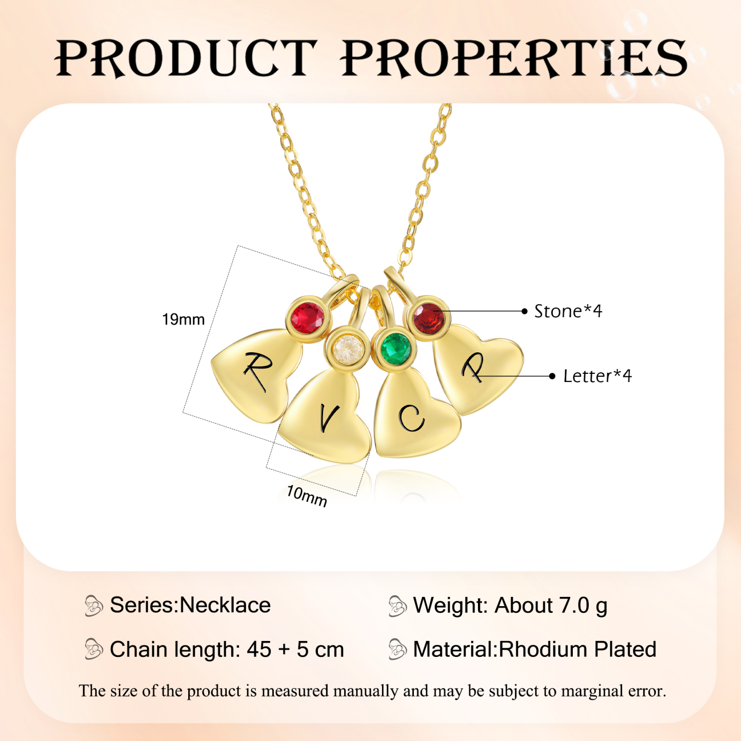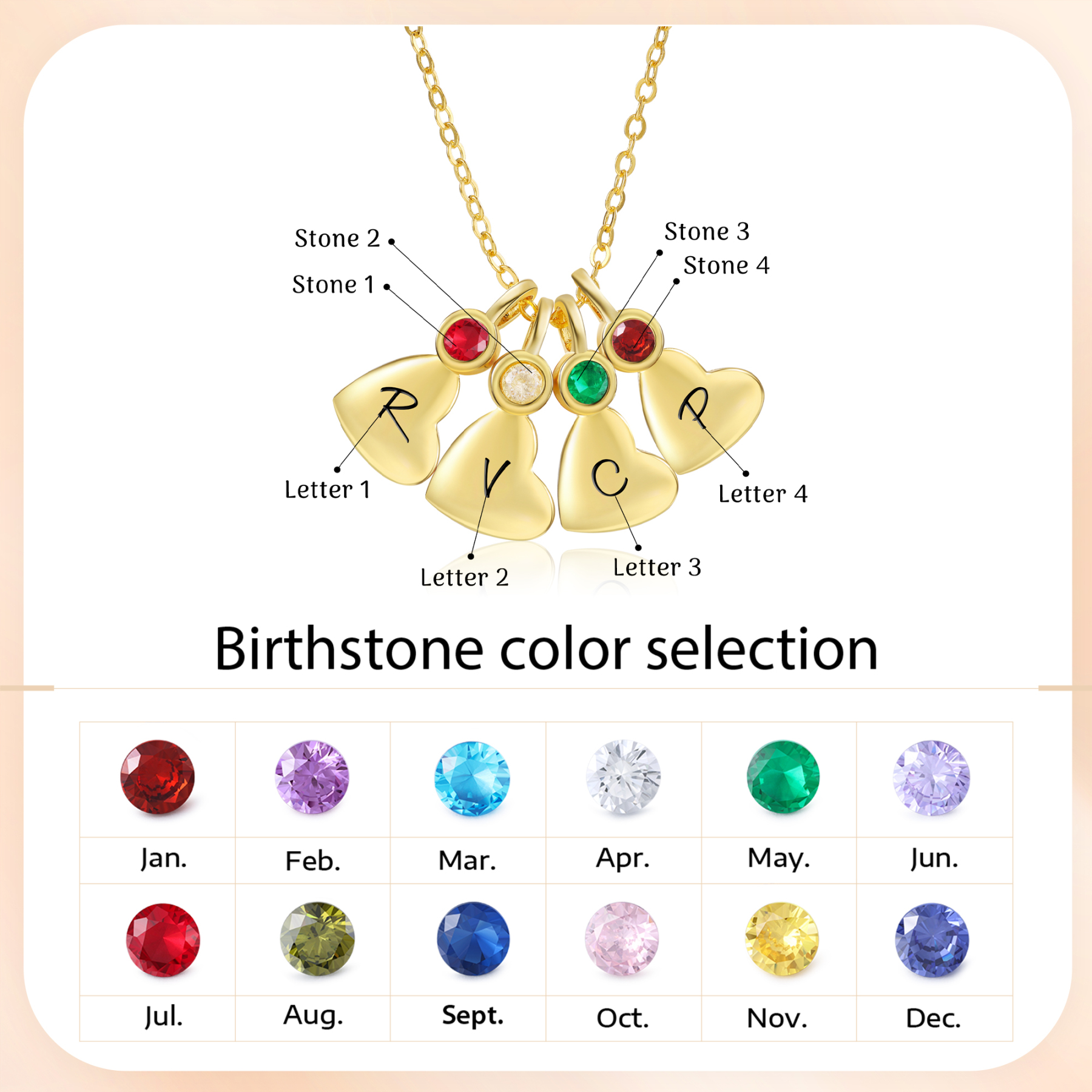 Personalized Heart Pendant Necklace Custom 4 Letters & 4 Birthstones Necklace Gifts for Her
