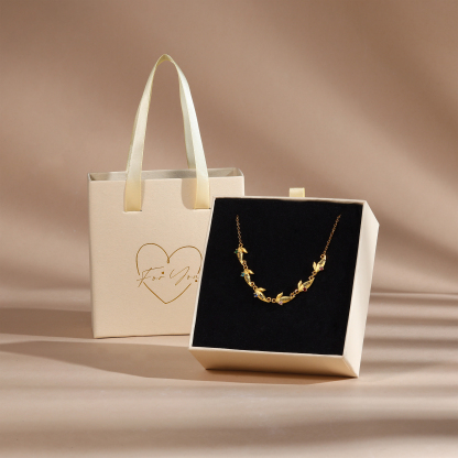 Personalized Leaves Pendant Necklace Custom 2 Names & 2 Birthstones Necklace Gifts for Her