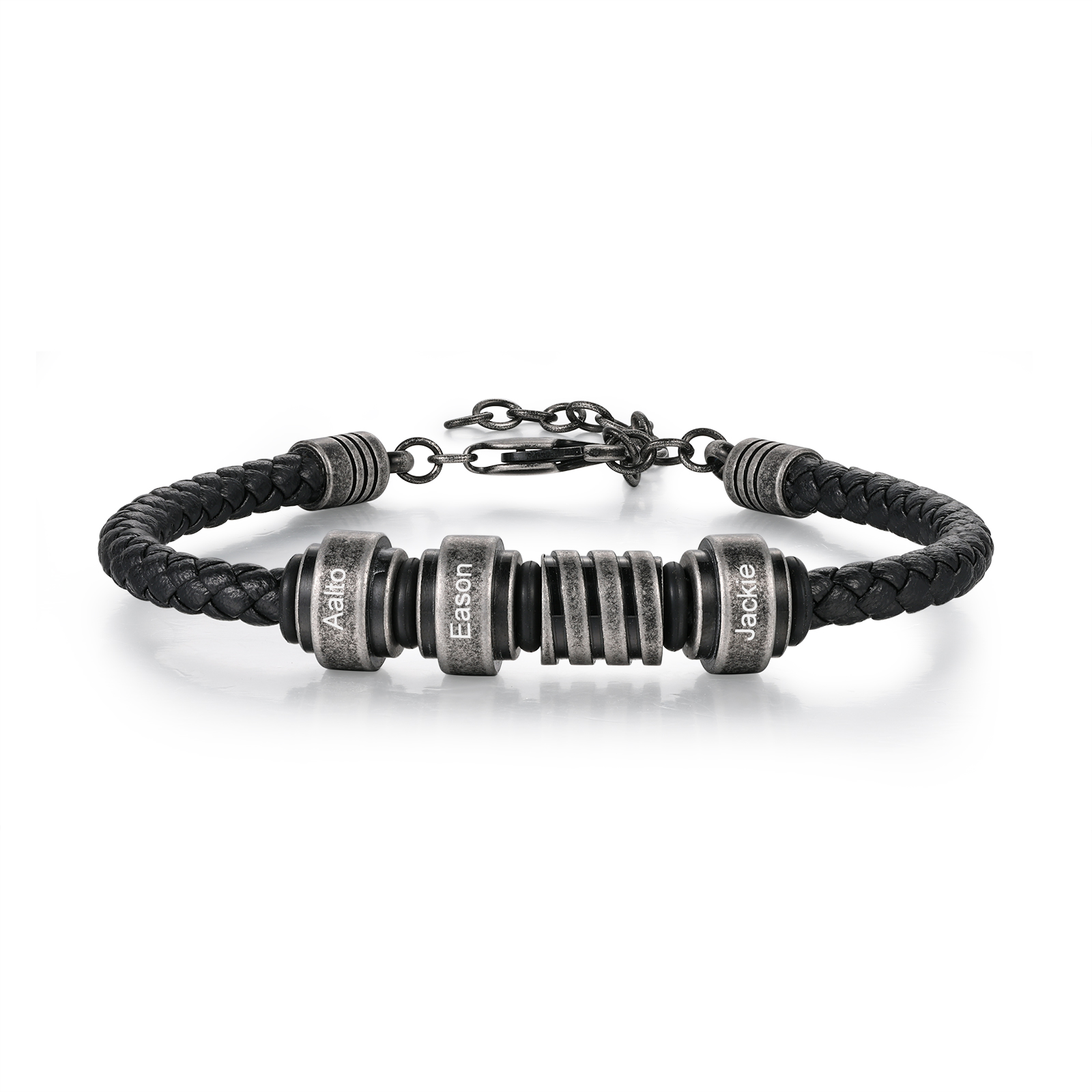 💼 This bracelet combines sturdy stainless steel with elegant leather and customizable design, infusing your emotions and personality into it. Customize with 3 names, creating an unforgettable gift for him.