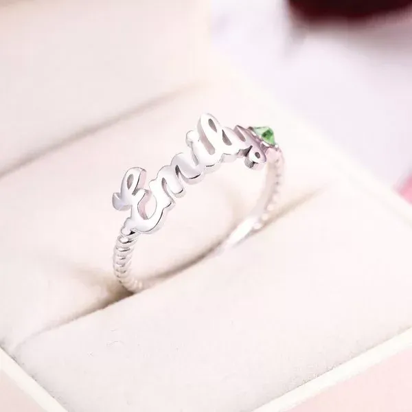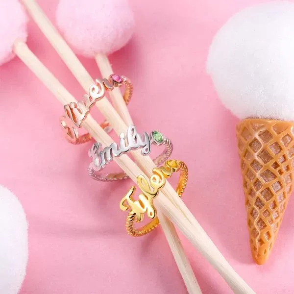 Personalized Name Ring with Birthstone Rope Band Ring for Women