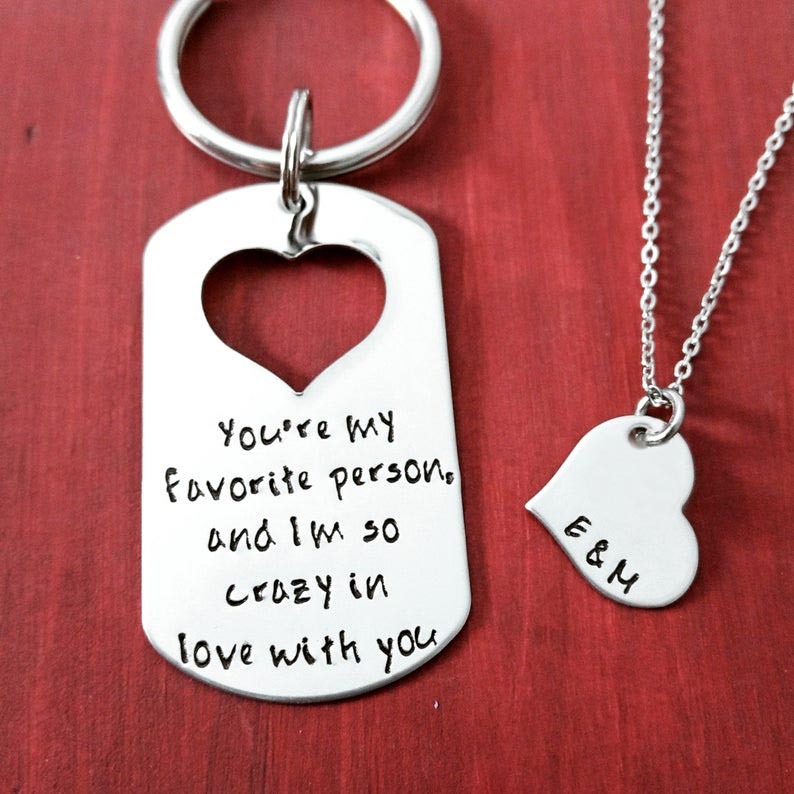 Personalized Necklace and Keychain Gift Set for Couple "You Are My Favorite Person"