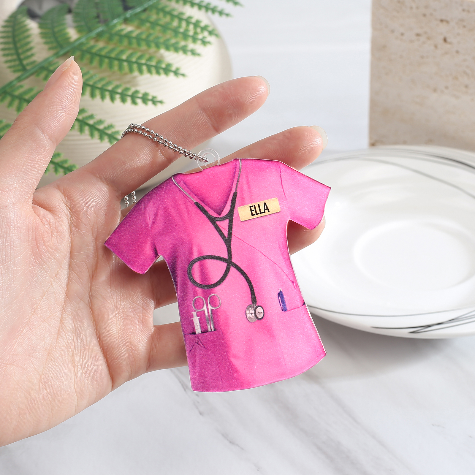 😊 Make your favorite nurse's day brighter with this adorable acrylic pendant featuring their name!
