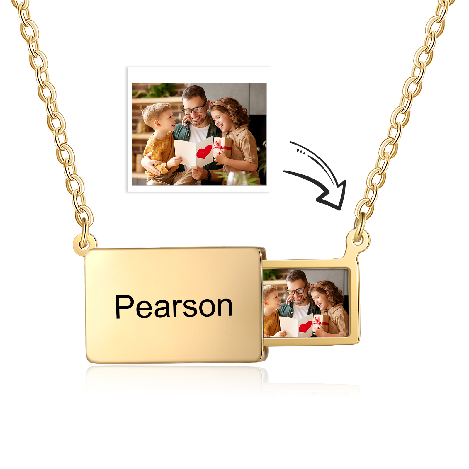 Personalized Photo Envelope Necklace with Engraving Name Gift for Her