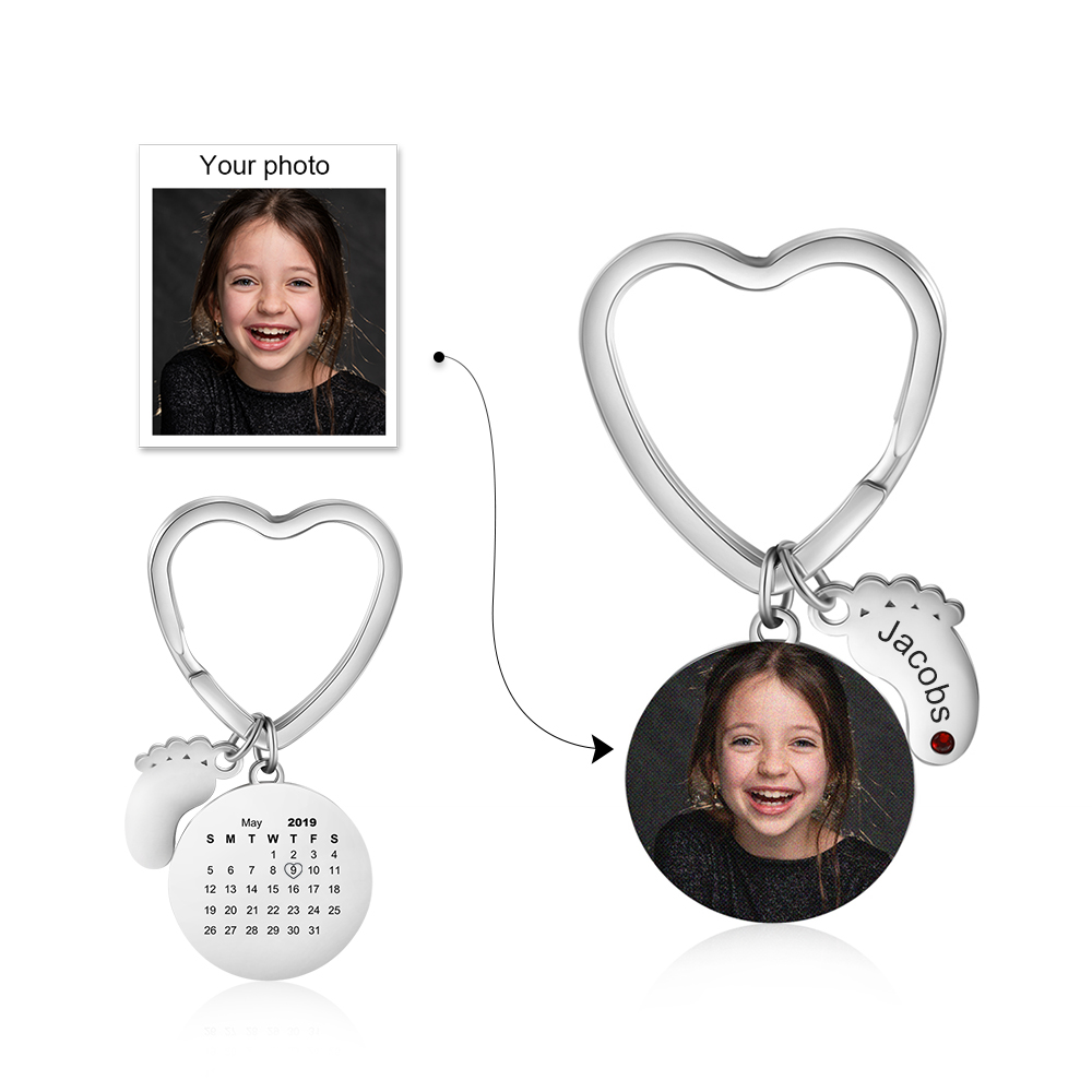 Personalized Photo Heart Keychain with Calendar Engraved Name