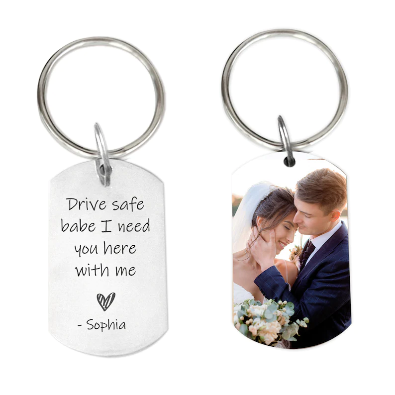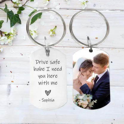 Personalized Photo Keychain for Couple "Drive Safe Babe I Need You Here with Me"