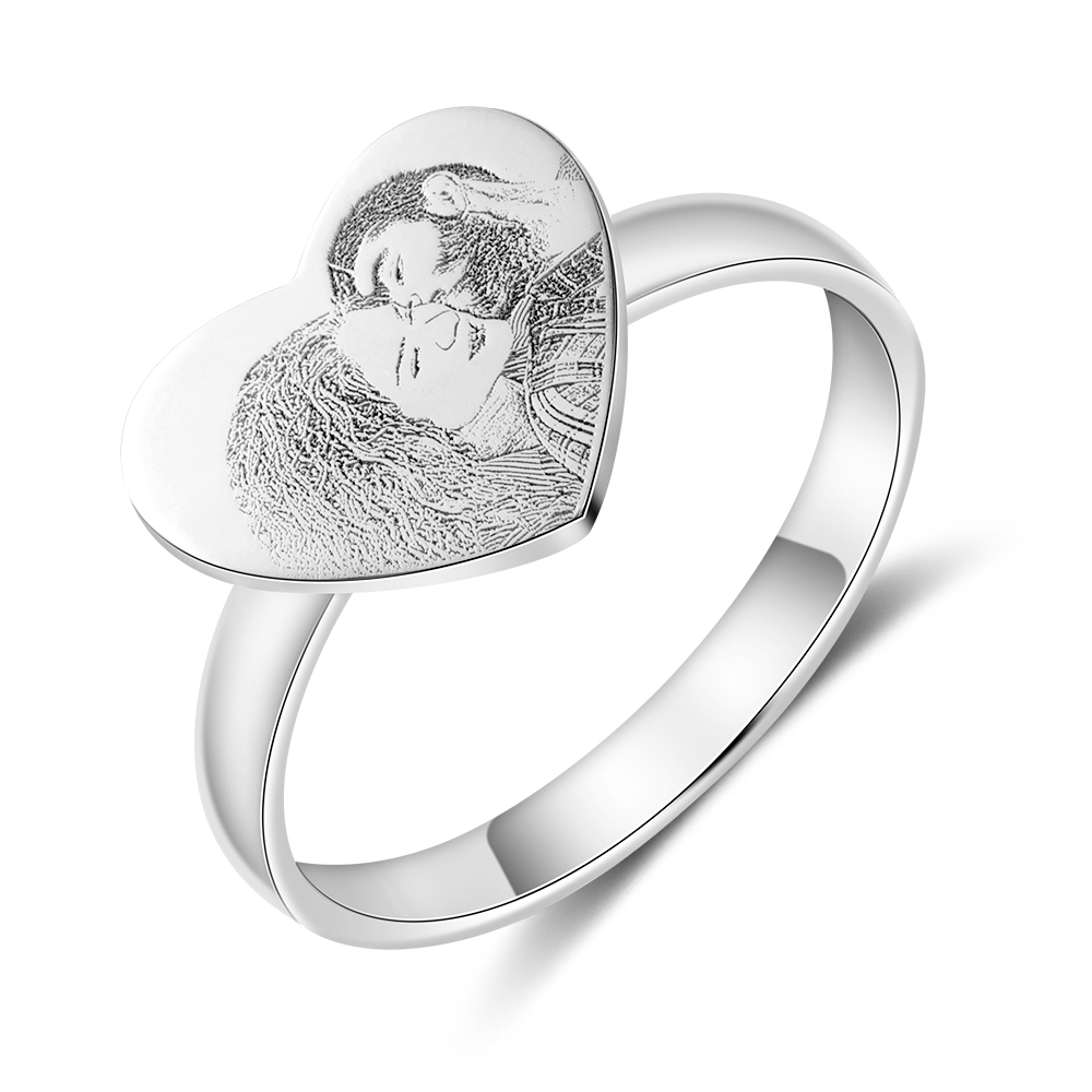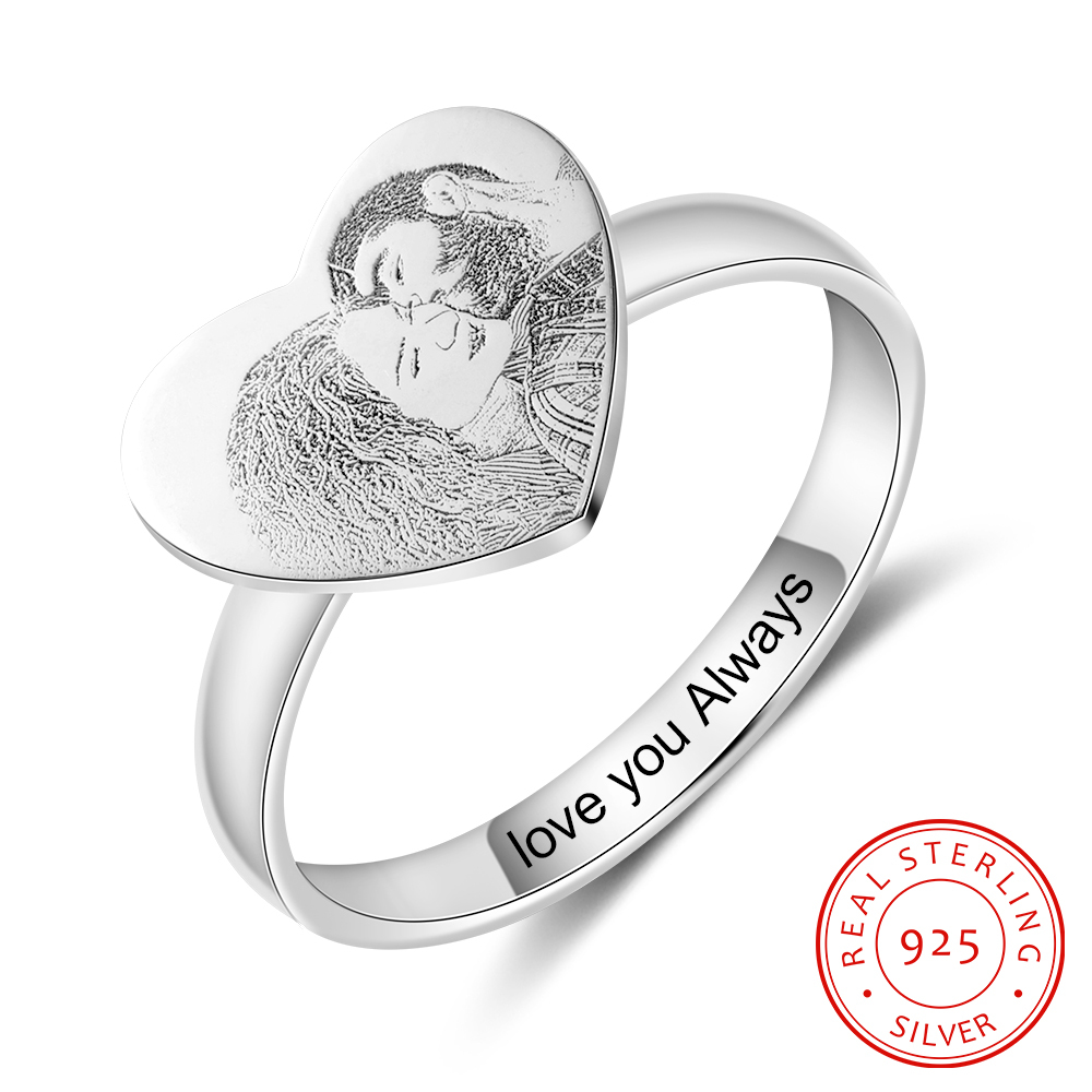 Personalized Photo Ring Women's Heart Shape Ring Sterling Silver Gift for Her