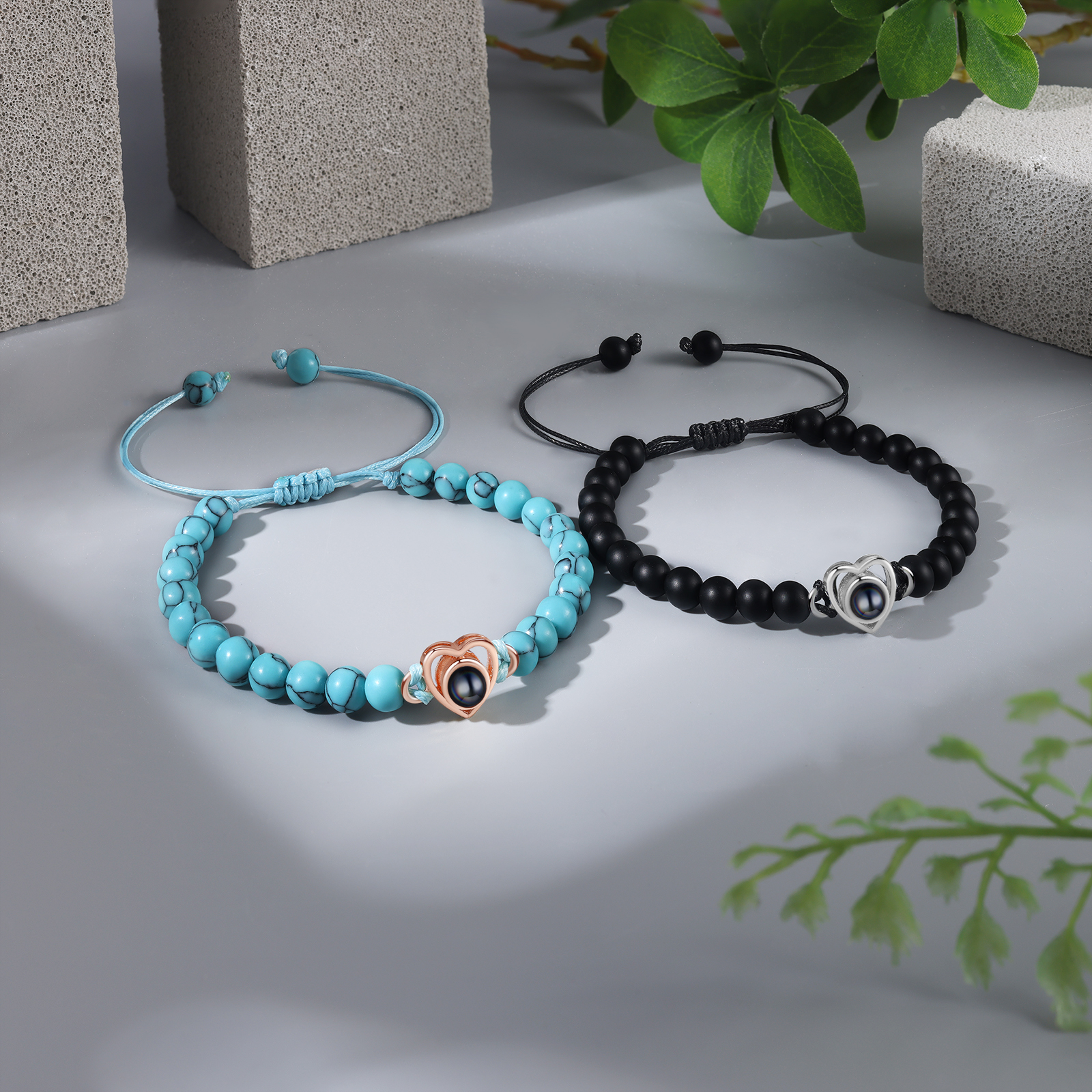 Personalized Projection Beaded Bracelet Customized Photo Bracelet Blue Adjustable Bracelet Personalized Gift for Couples